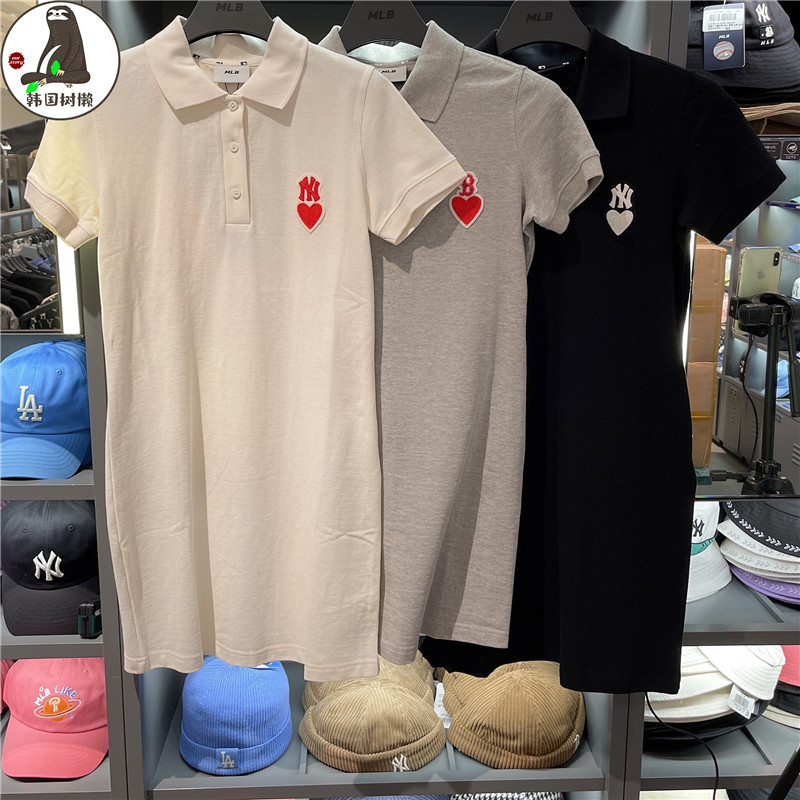 MLB, платье, юбка, приталенная футболка polo, с вышивкой