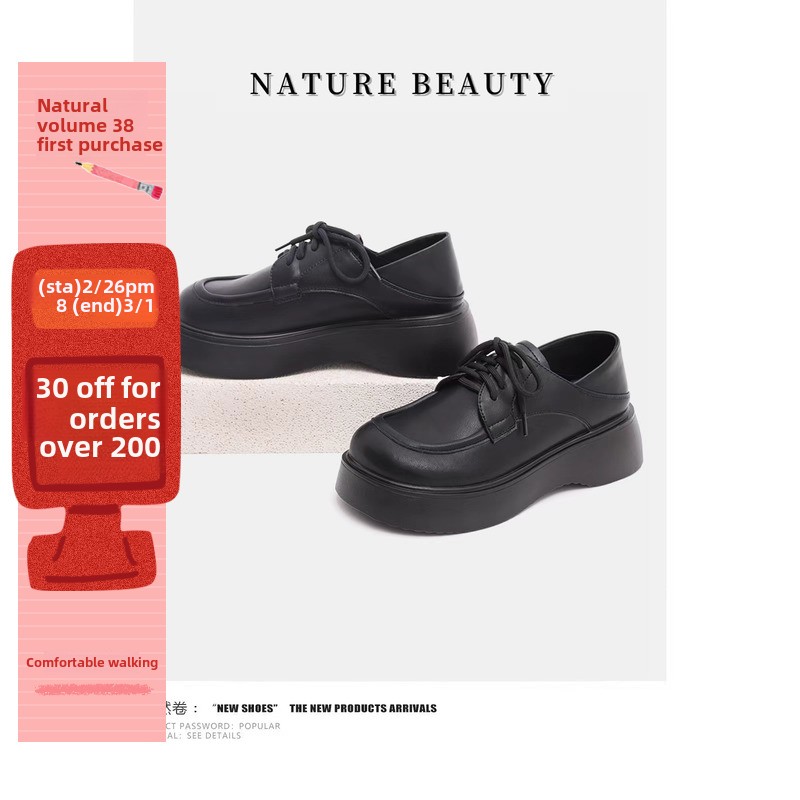 Естественный объем 2025, весенние новые лоферы в британском стиле на шнуровке на толстой подошве, старинные маленькие кожаные туфли с квадратным носком для женщин из натуральной кожи