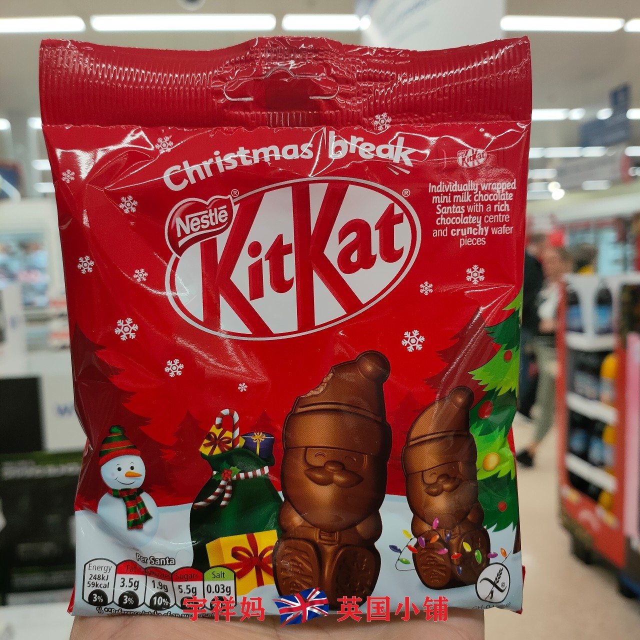 | Еда: | Мини -оленей Elk 59G, Mini Reindeers со вкусом мяты 59г, Шоколад Maltesers Milk Rabbit 59г, Шоколад Maltesers белый 59г, КитКат Дед Мороз 59г, Cadbury Mini Eggs Resurrection Egg 80G, КитКат Кролик 55г, Яйца Cadbury Mini Пасхальные яйца 296г |
