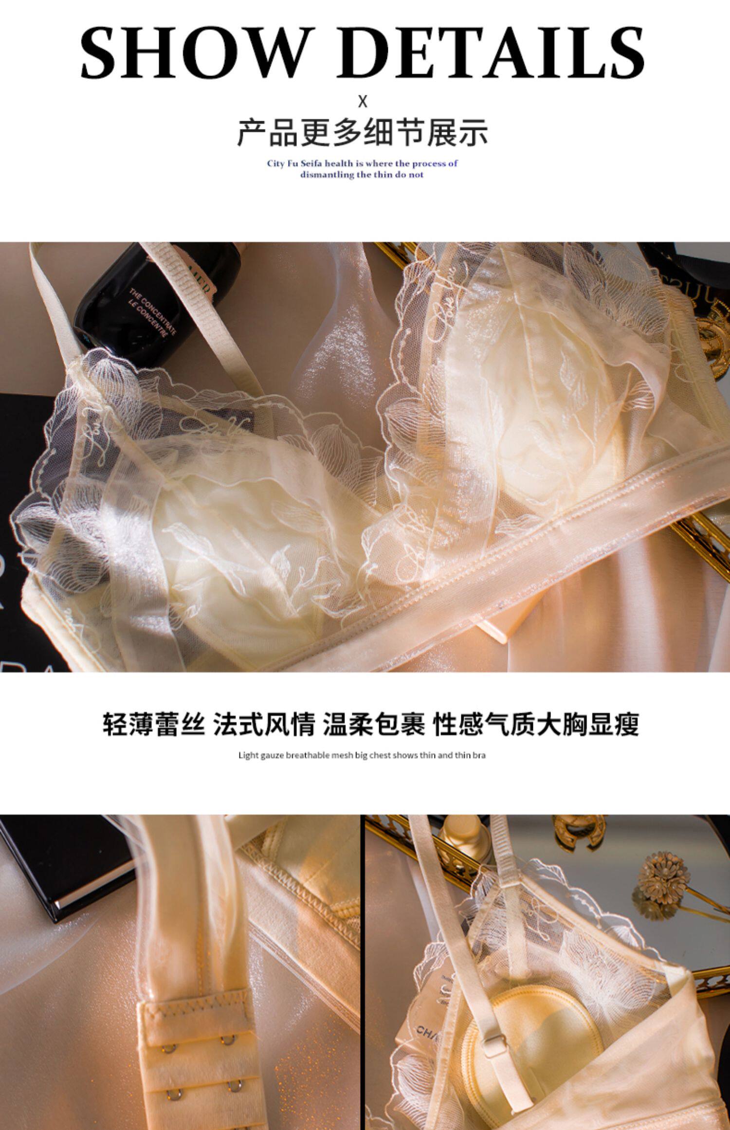 Кружевное нижнее белье, ультратонкий бюстгальтер без косточек, по фигуре, французский стиль