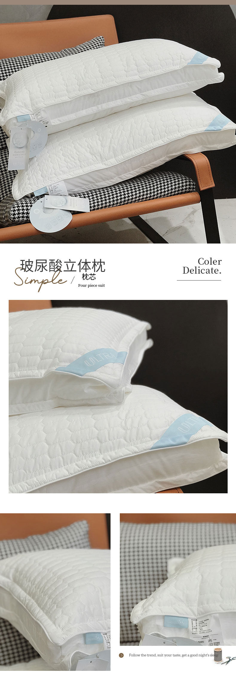 Фиолетовая гиалуроновая смягченная кожа Трехмерная подушка, подушка с высокой спинкой шеи, мягкая спина мягкая подушка отеля ядро взрослое подушка для взрослых