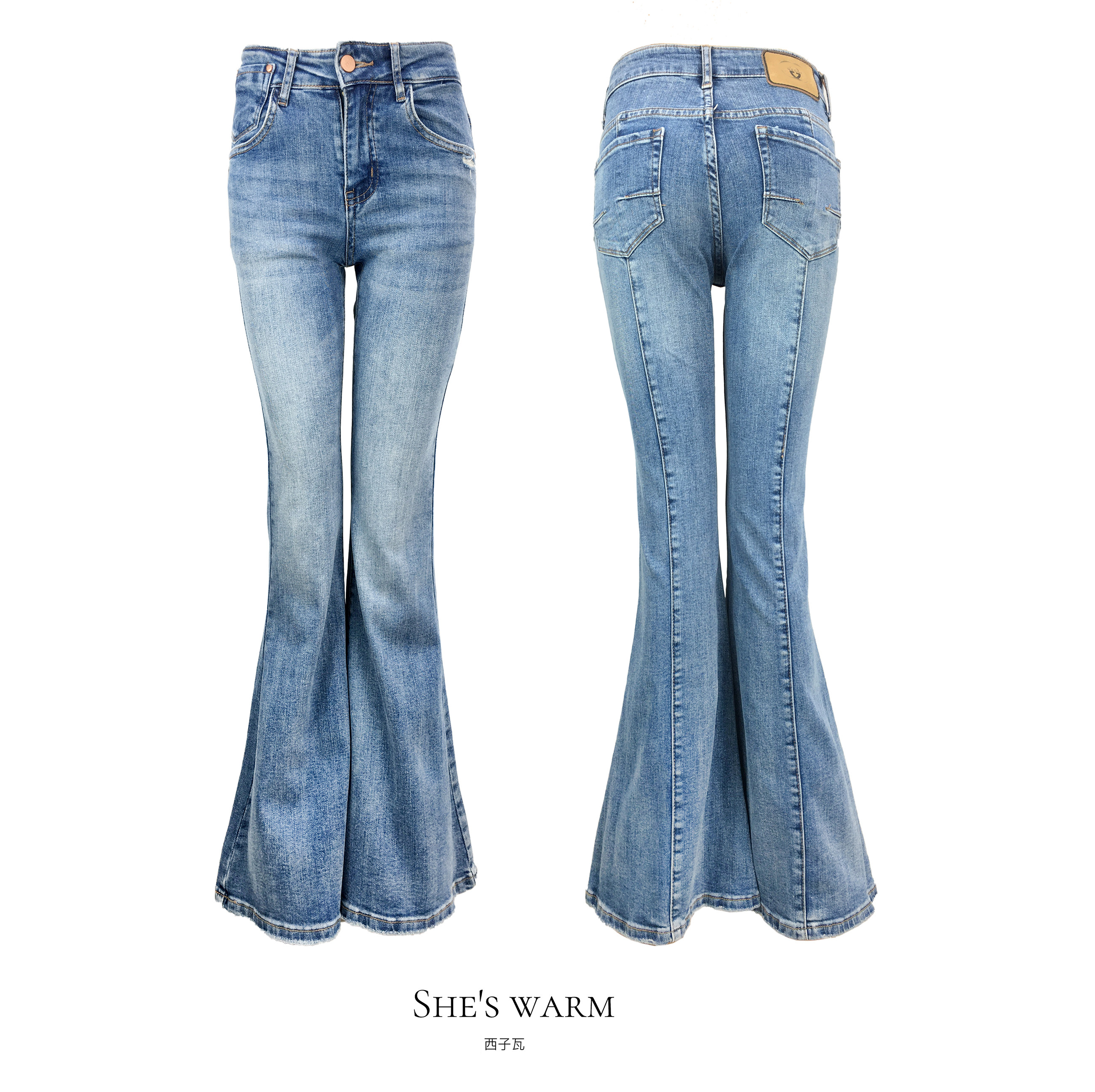 Сяаодианская высококачественная американская западная пастушка Горячая девушка Гонконг Ретро Ретро хлопчатобумажная бомба с низкой джинсовой тканью большие расклешенные штаны