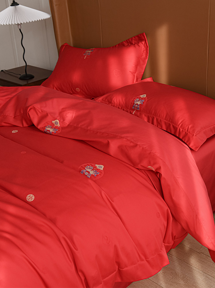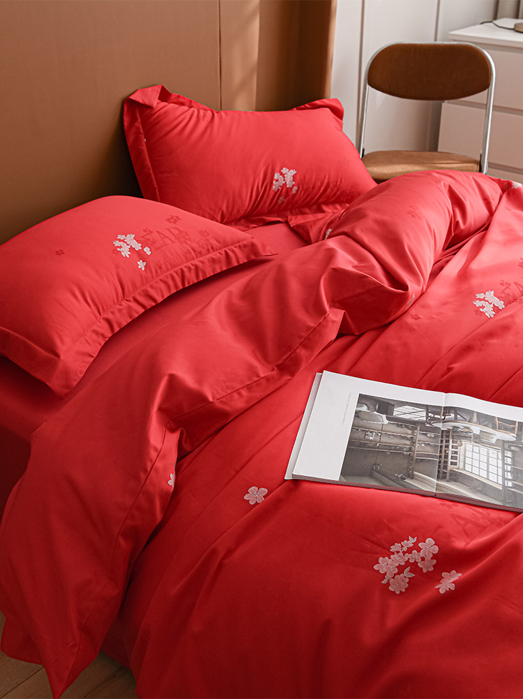 Красное покрывало, хлопковый высококлассный комплект, 4 предмета, простой и элегантный дизайн