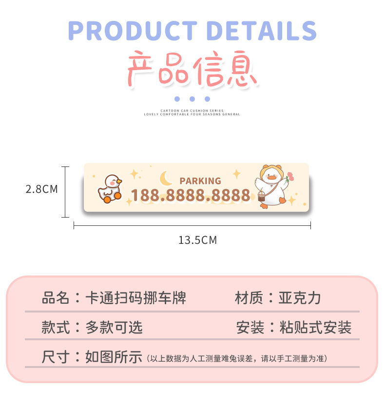 Временная парковочная пластина, автомобиль, код сканирования с нулевым временем, два -мерный код, творческая личность, творческая личность, движущаяся телефона, украшения