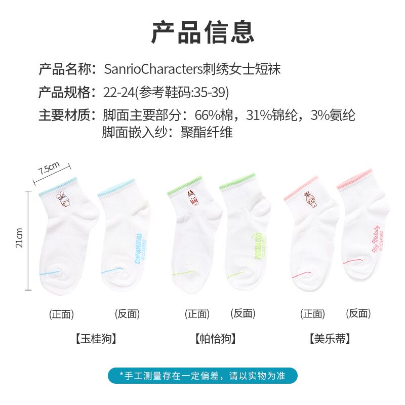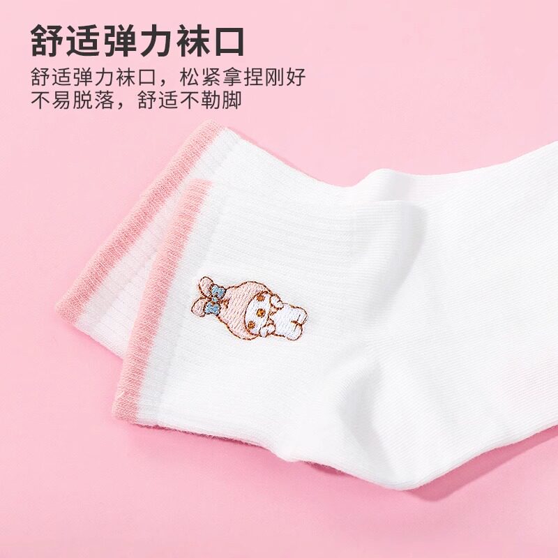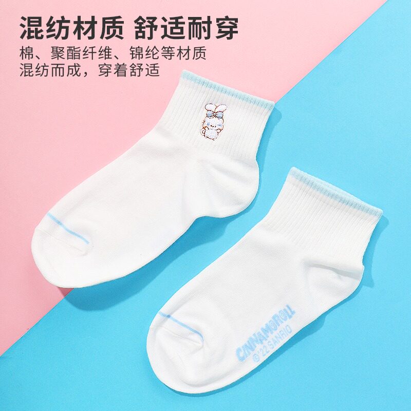 Женские носки с вышивкой MINISO, знаменитый продукт Sanrio, чисто белые студенческие носки с корицей и собакой Kurome
