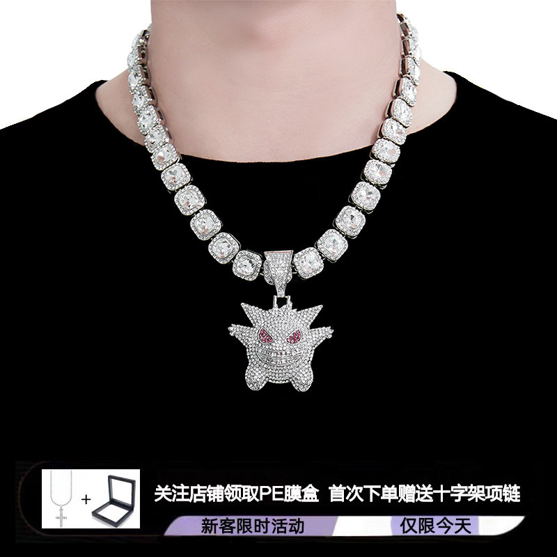 Мужское ожерелье в стиле хип-хоп, цепочка, подвеска, в американском стиле, инкрустировано бриллиантами, мужской стиль