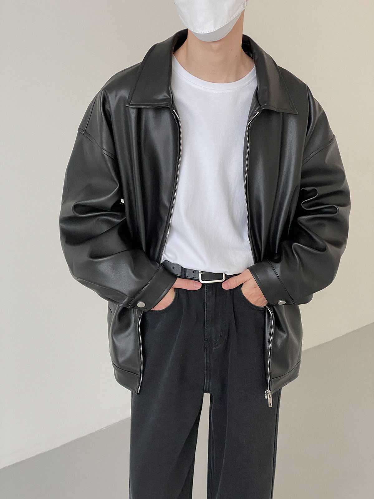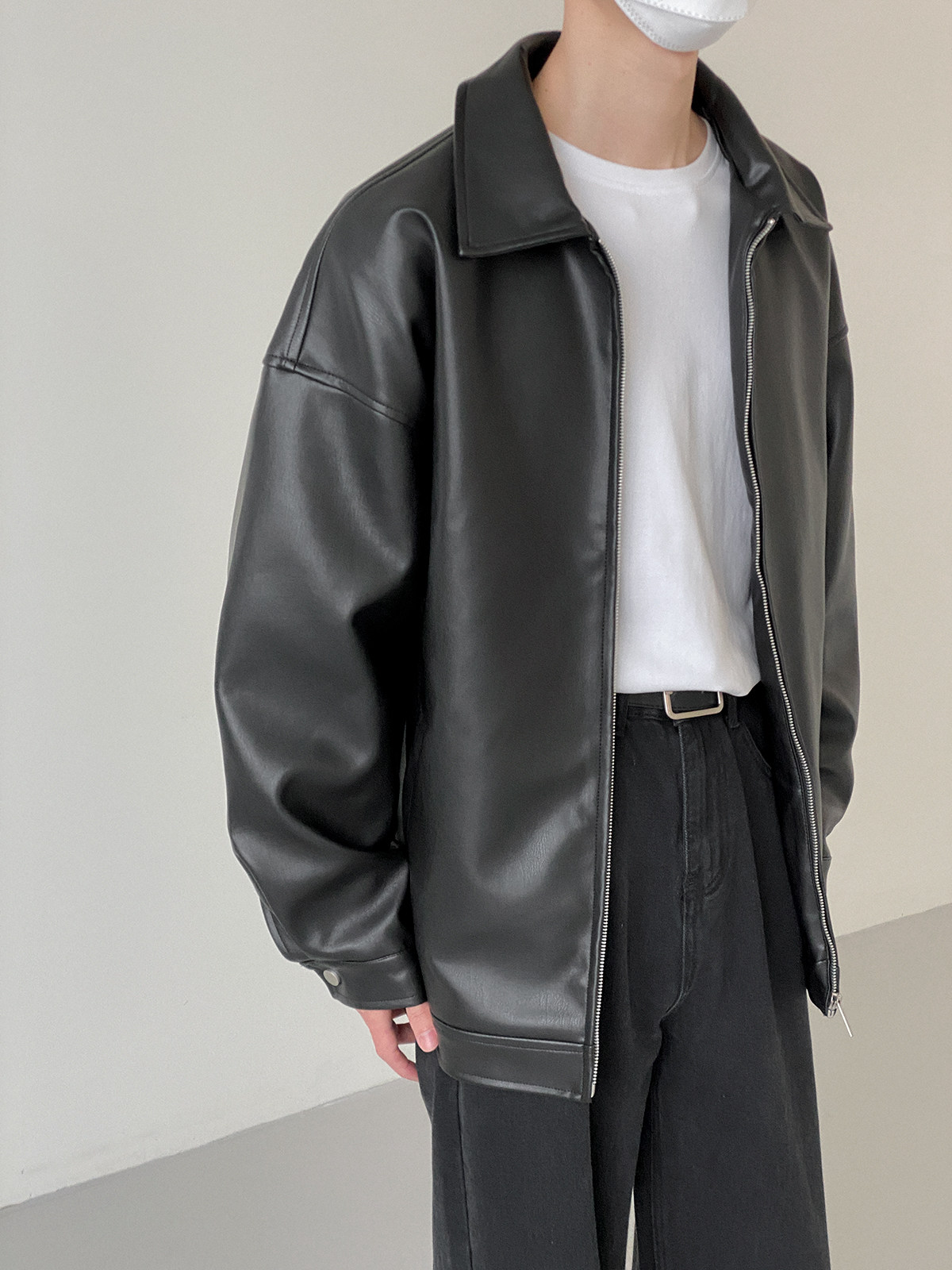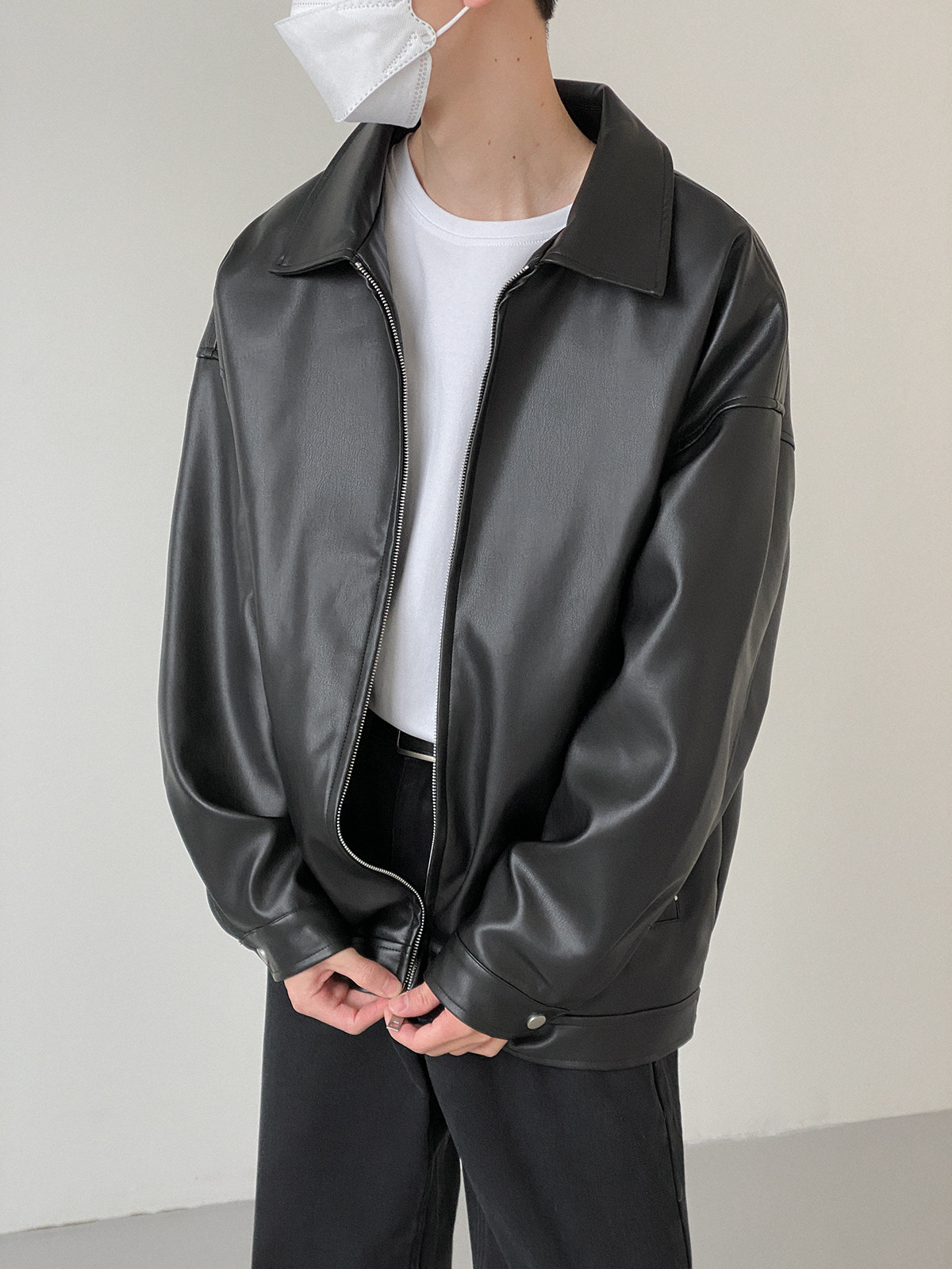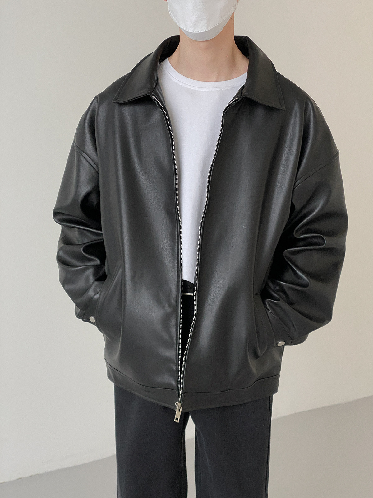 Tide, мужская базовая черная полиуретановая куртка с молнией для отдыха, оверсайз