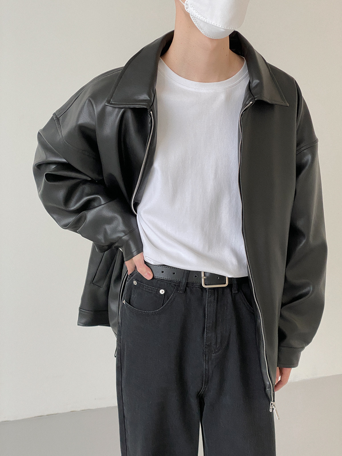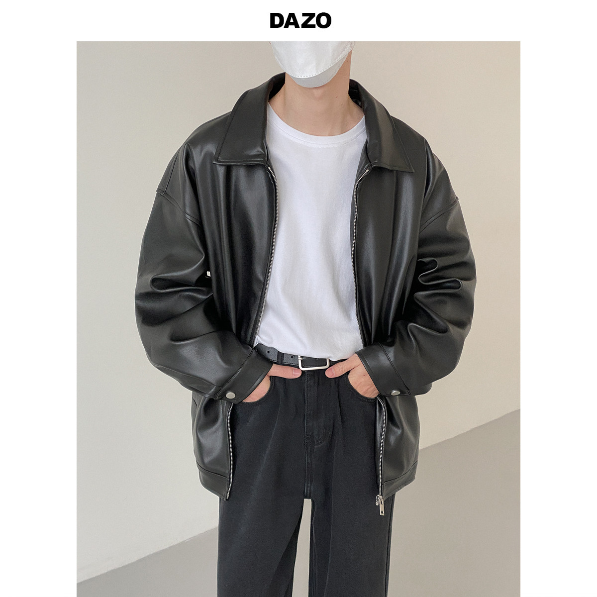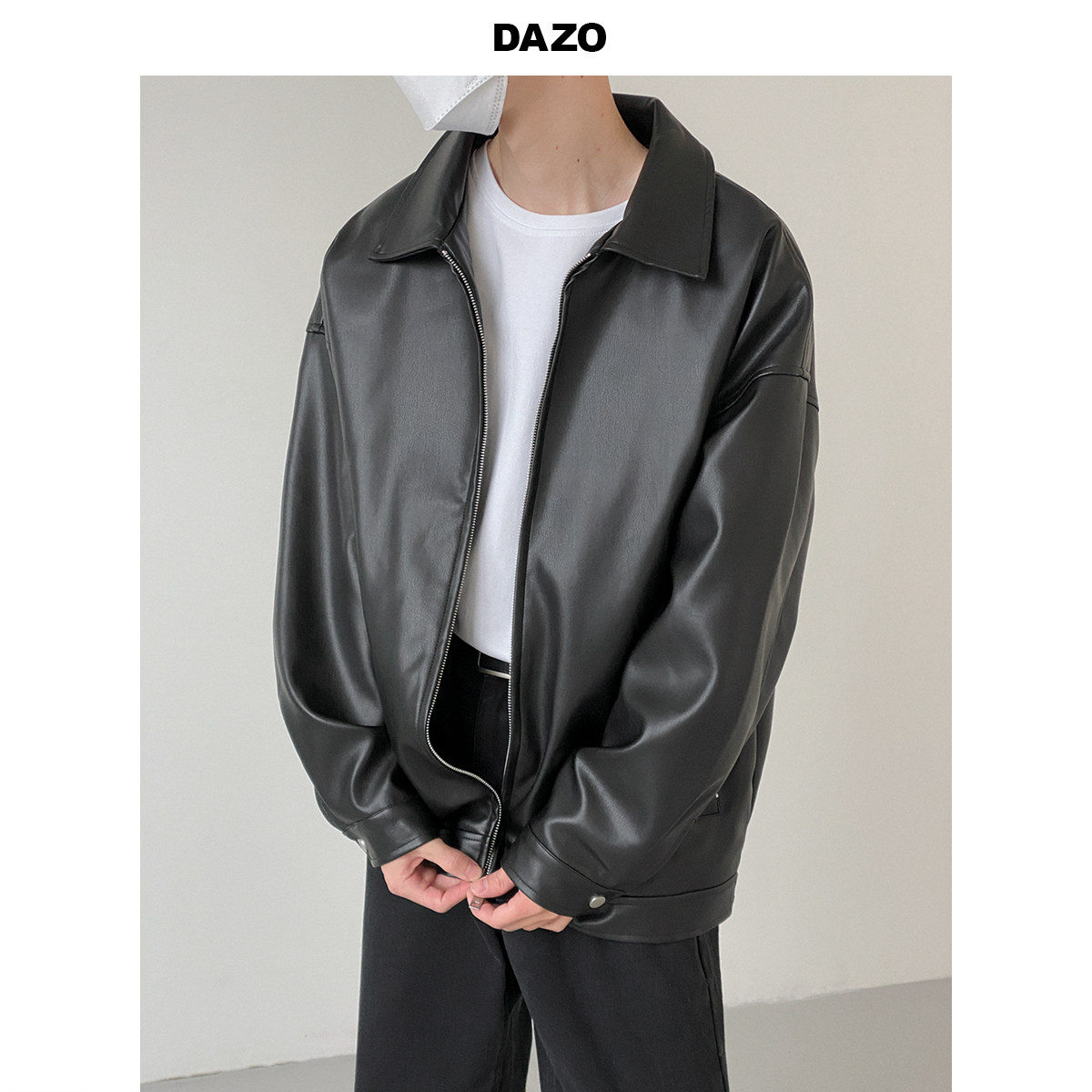 Tide, мужская базовая черная полиуретановая куртка с молнией для отдыха, оверсайз