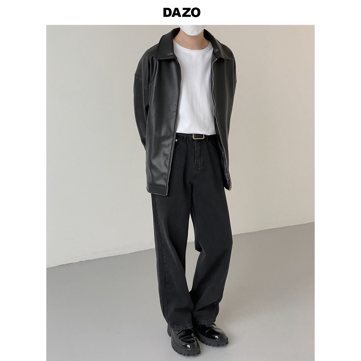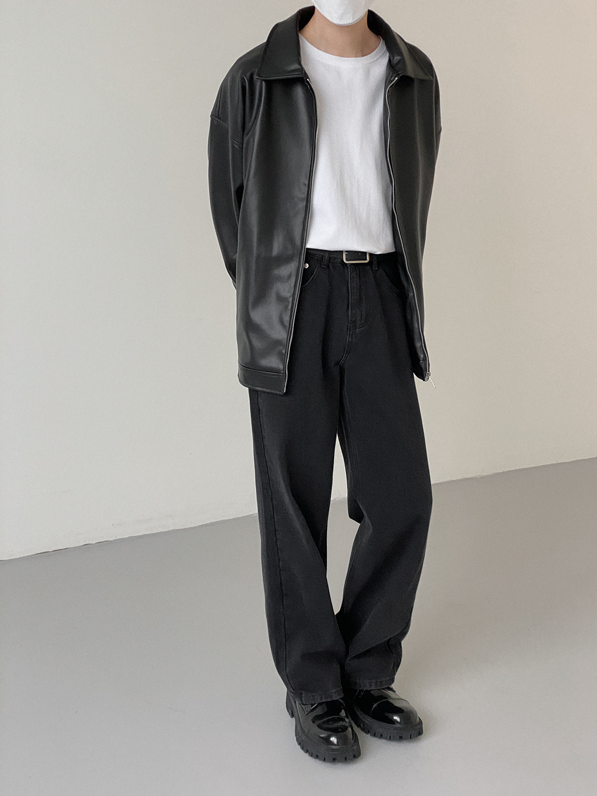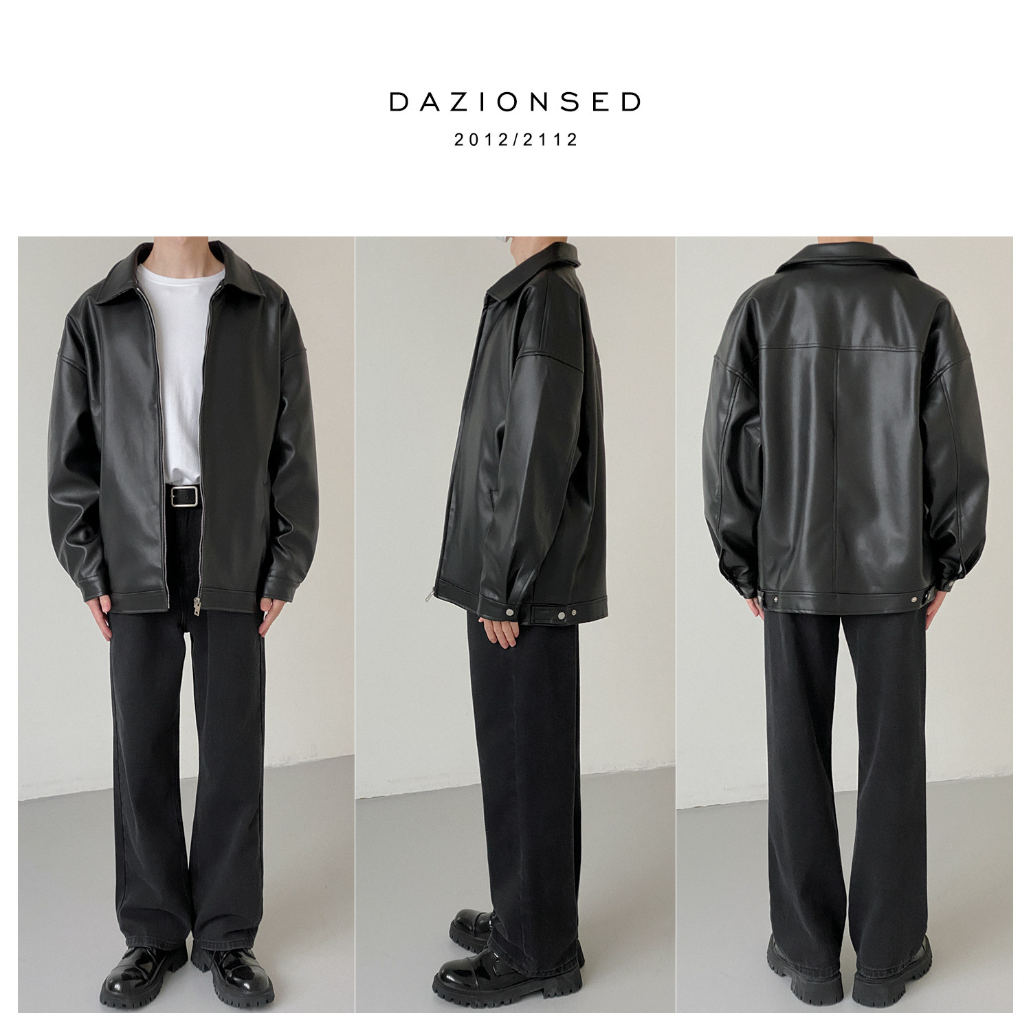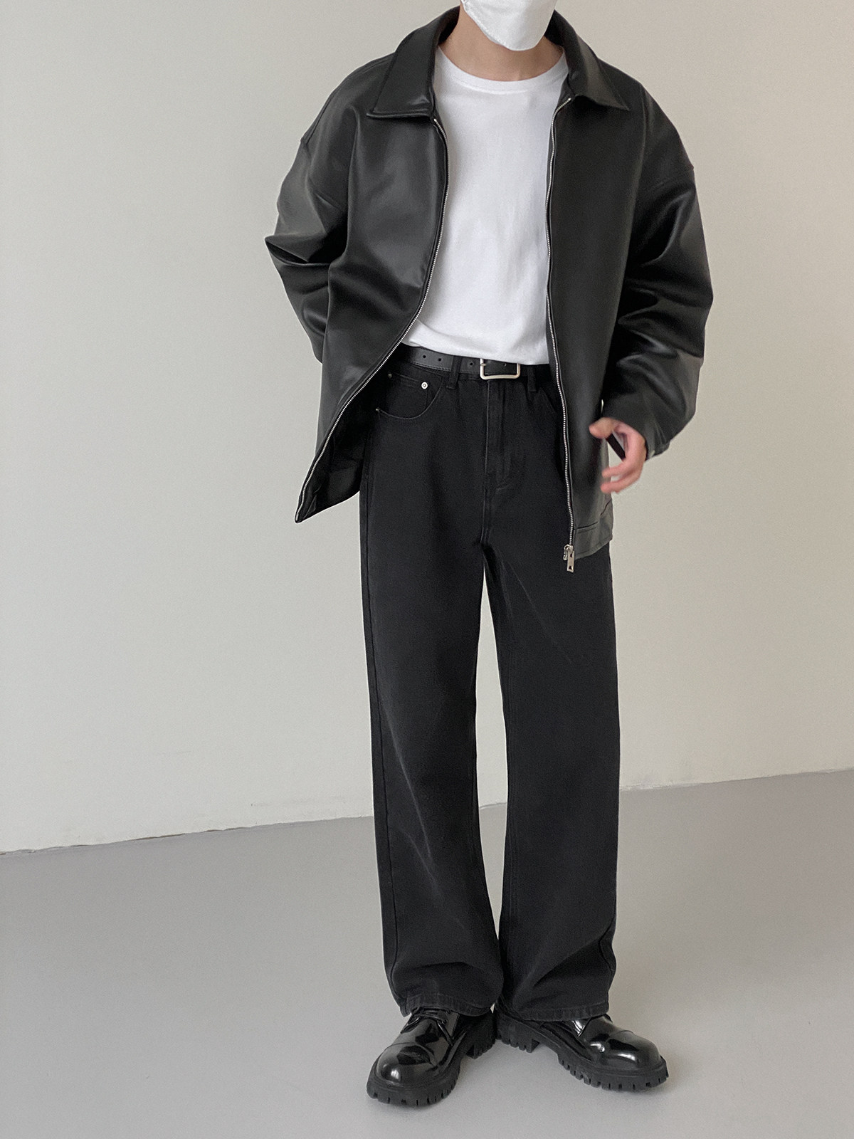 Tide, мужская базовая черная полиуретановая куртка с молнией для отдыха, оверсайз