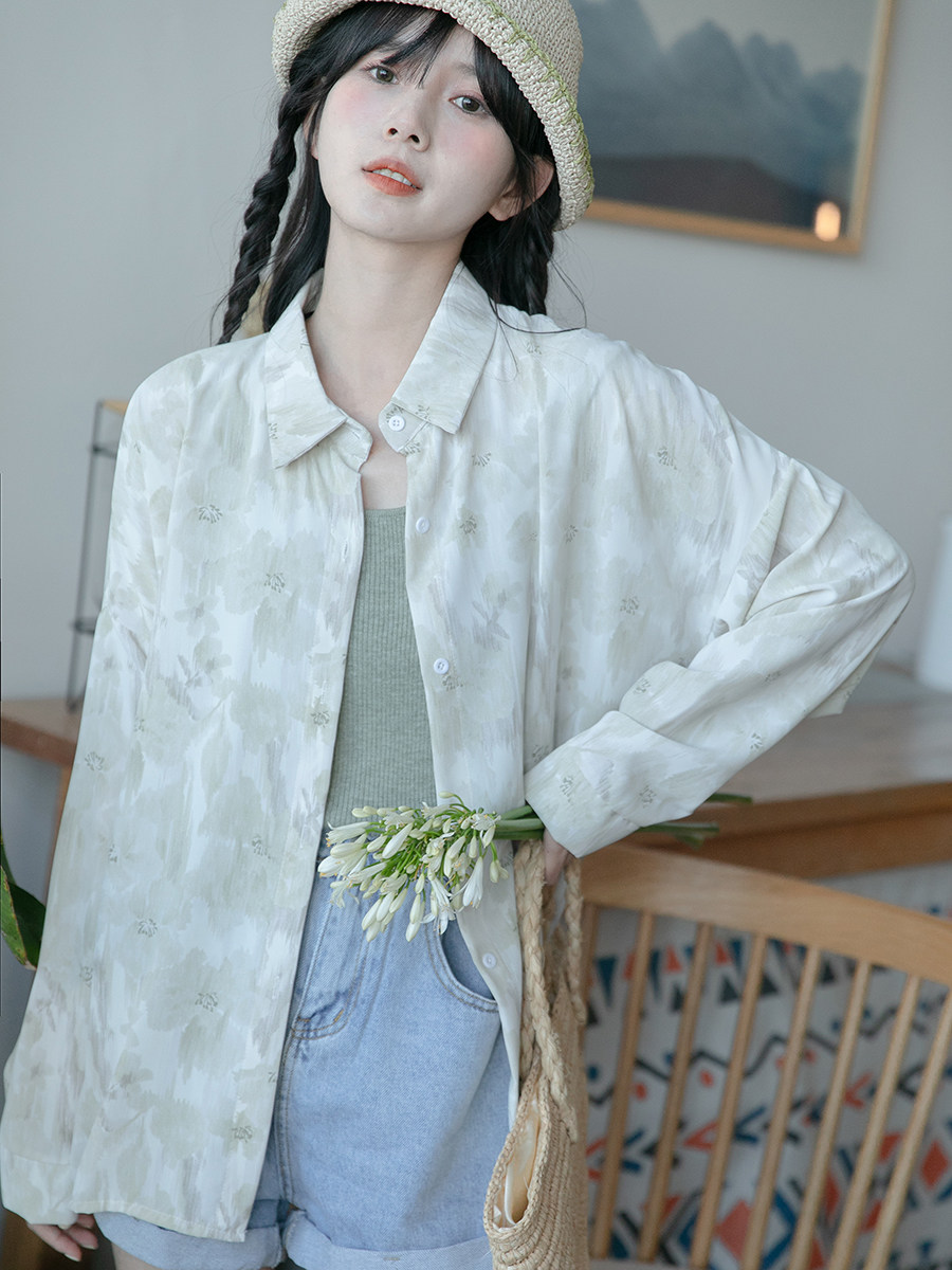 Осенняя рубашка, дизайнерская куртка, лонгслив, тренд сезона, изысканный стиль, цветочный принт