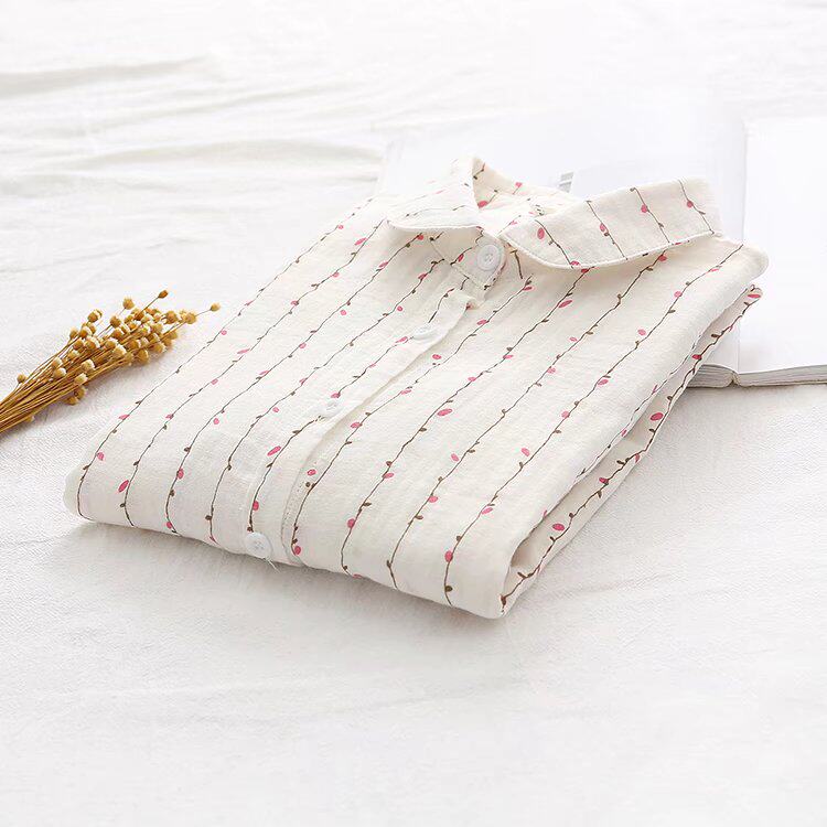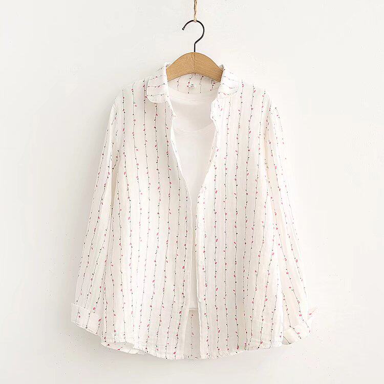 Осенняя японская хлопковая рубашка, в корейском стиле, цветочный принт