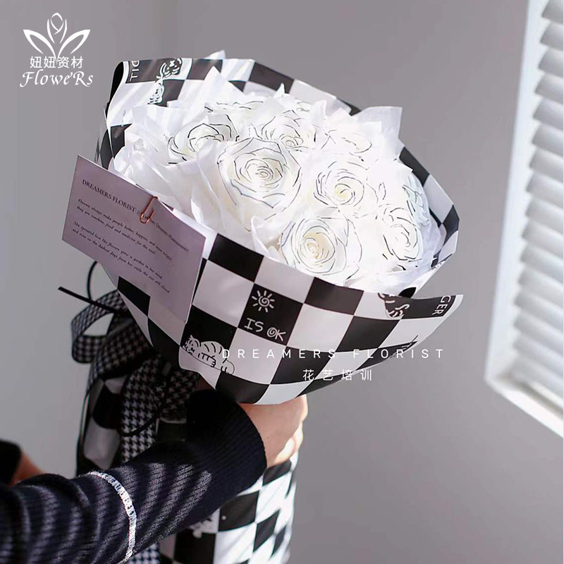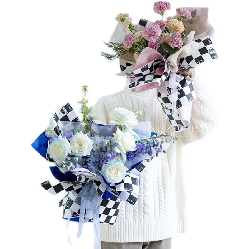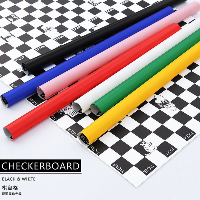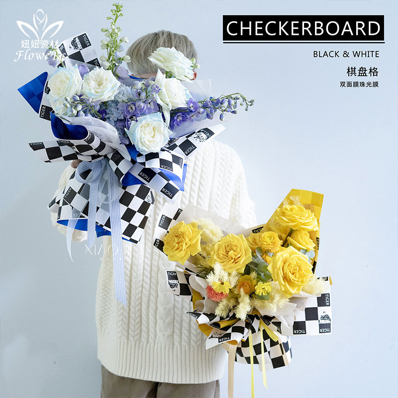 Новая перламутровая пленка в шахматном порядке, модная и крутая водонепроницаемая клетчатая бумага, двусторонняя упаковочная бумага, цветы, цветочный магазин, цветочное искусство и цветочные материалы.
