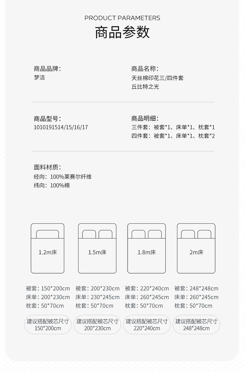 | Применимый размер кровати: | Кровать 1,2м (пододеяльник 150*200см) комплект из трёх предметов, Пододеяльник, комплект, 200x, 4 предмета, Пододеяльник, комплект, 220x, 4 предмета, Кровать 1,8/2м (пододеяльник 248х248см) комплект из четырёх предметов |