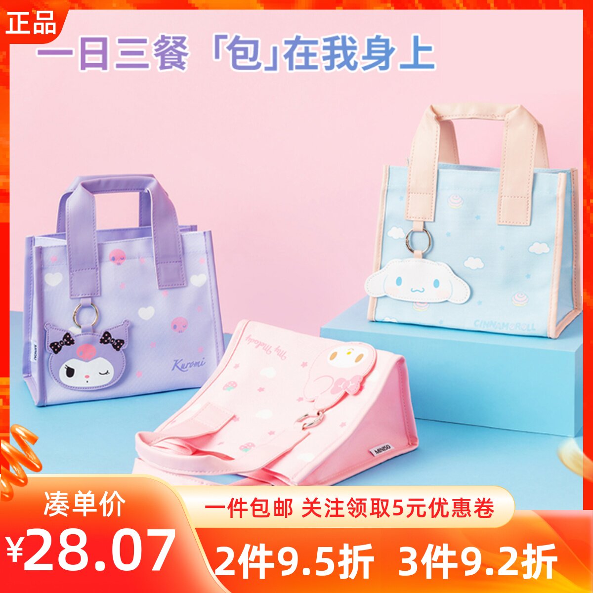Miniso знаменитый Санрио Сквер Бенто Бенто Сумка для собак Студенты Студенты для хранения рисовых ящиков
