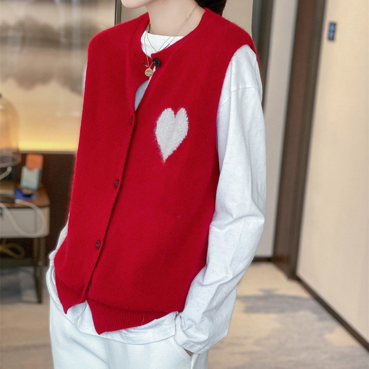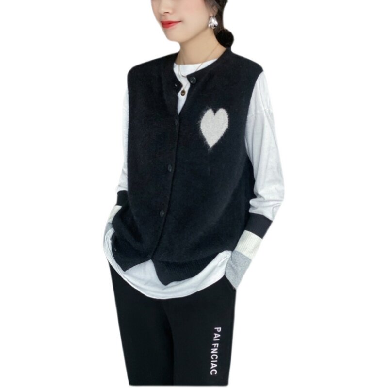 Трикотажный жилет с круглым воротником, кашемировый кардиган, короткий свитер, шерстяная майка, оверсайз
