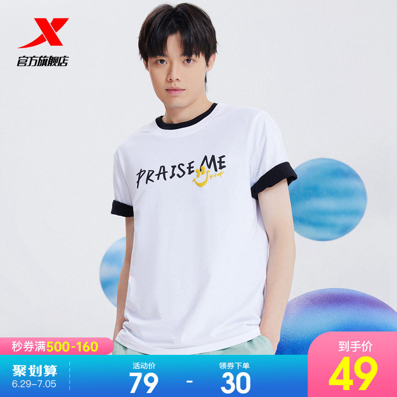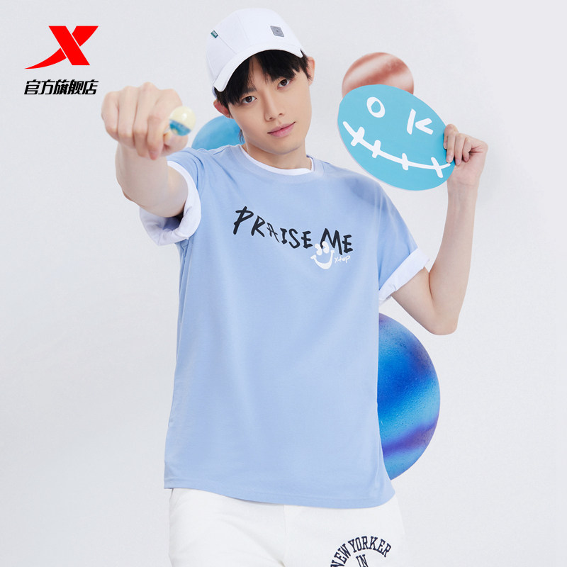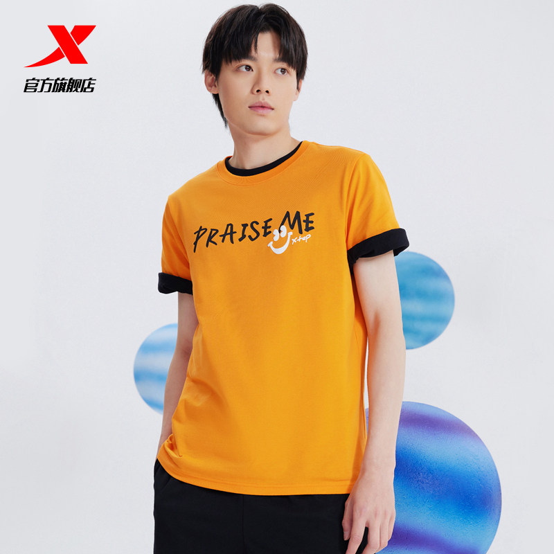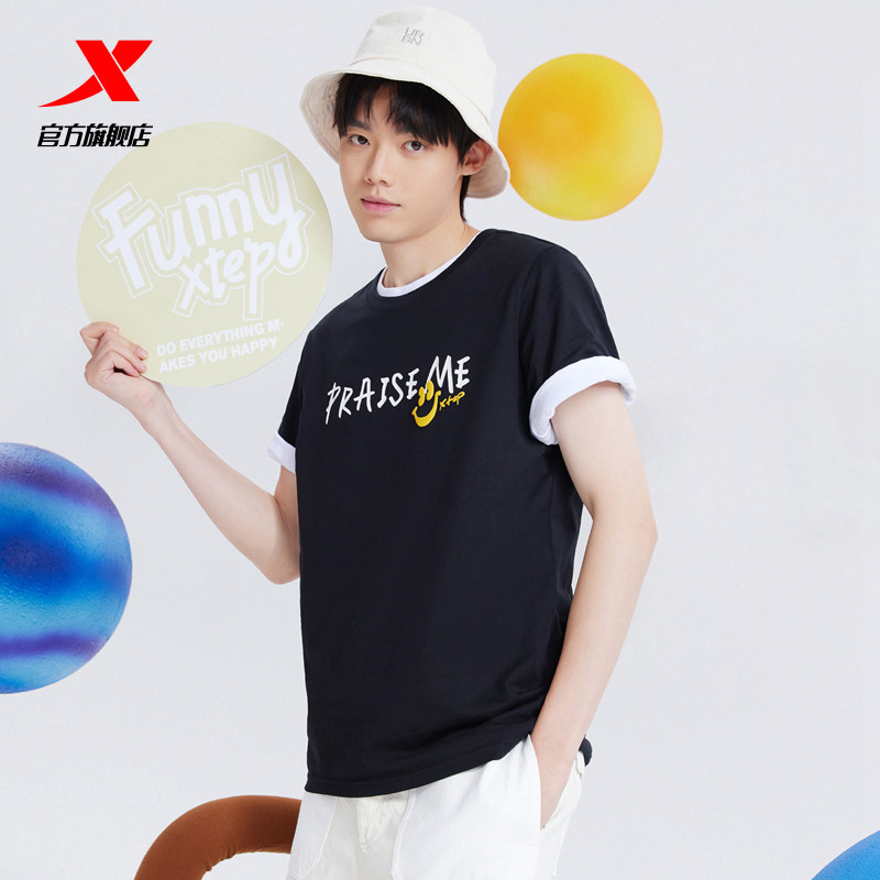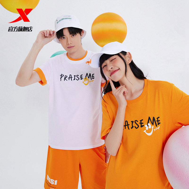 Xtep, летняя тонкая спортивная футболка с коротким рукавом для отдыха для влюбленных, круглый воротник