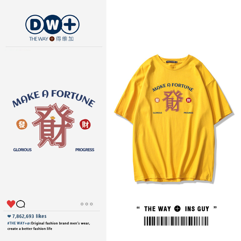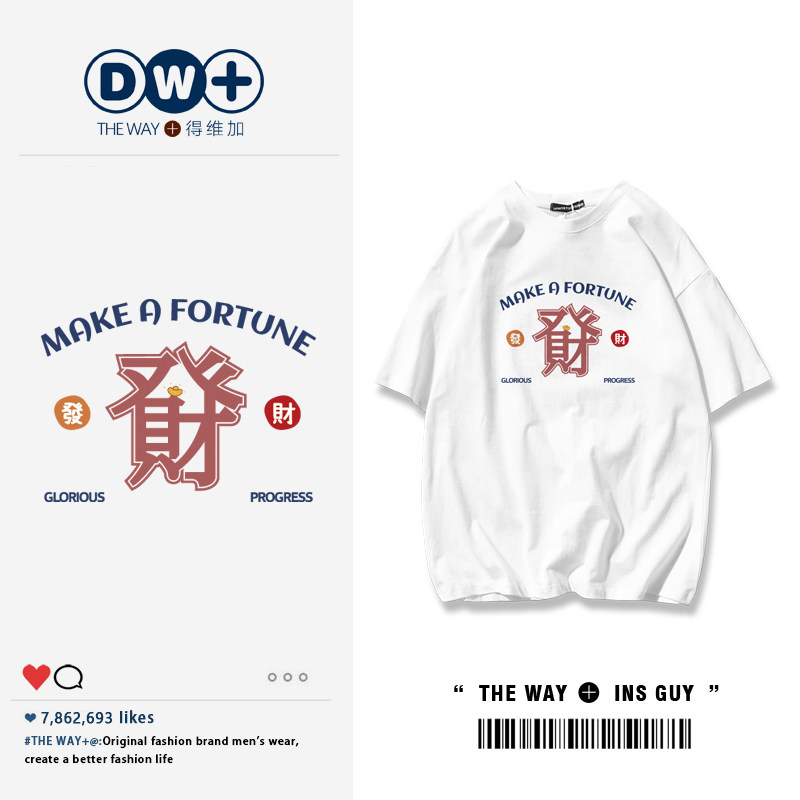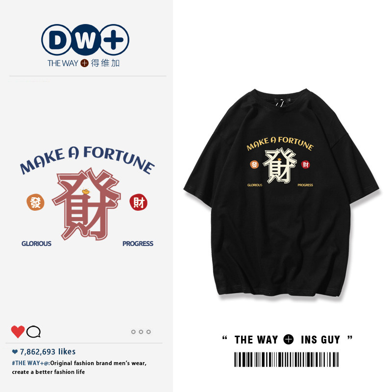 Tide, летняя хлопковая футболка с круглым воротником, 2022, короткий рукав, оверсайз