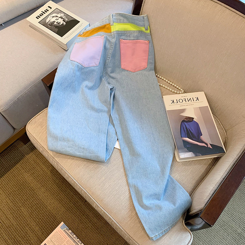 Цветные летние прямые свободные джинсы подходит для мужчин и женщин, дизайнерские брендовые штаны, высокая талия, тренд сезона