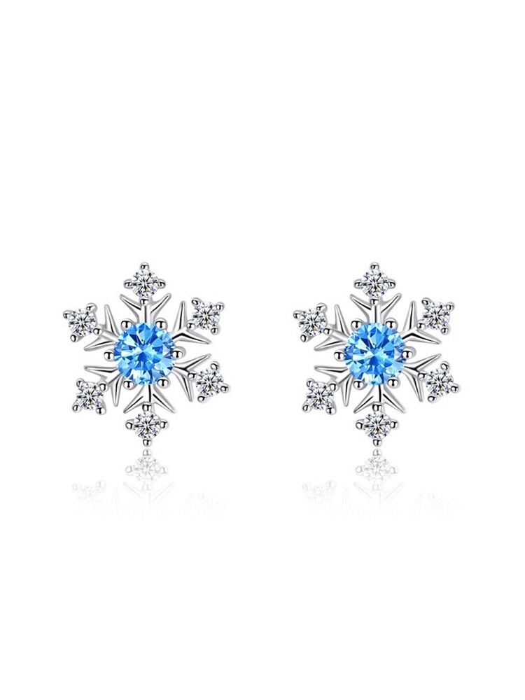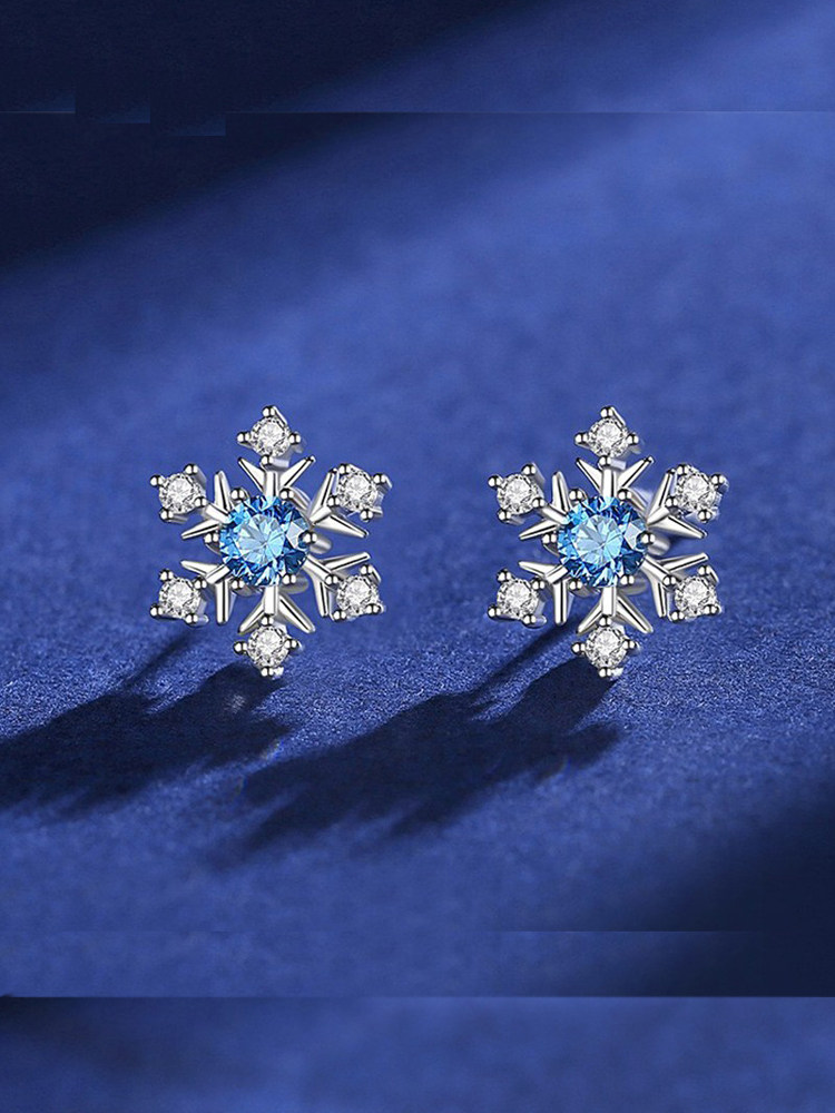 Серьги, небольшое дизайнерское ювелирное украшение, модная инкрустация камня, тренд сезона, легкий роскошный стиль, со снежинками, серебро 925 пробы