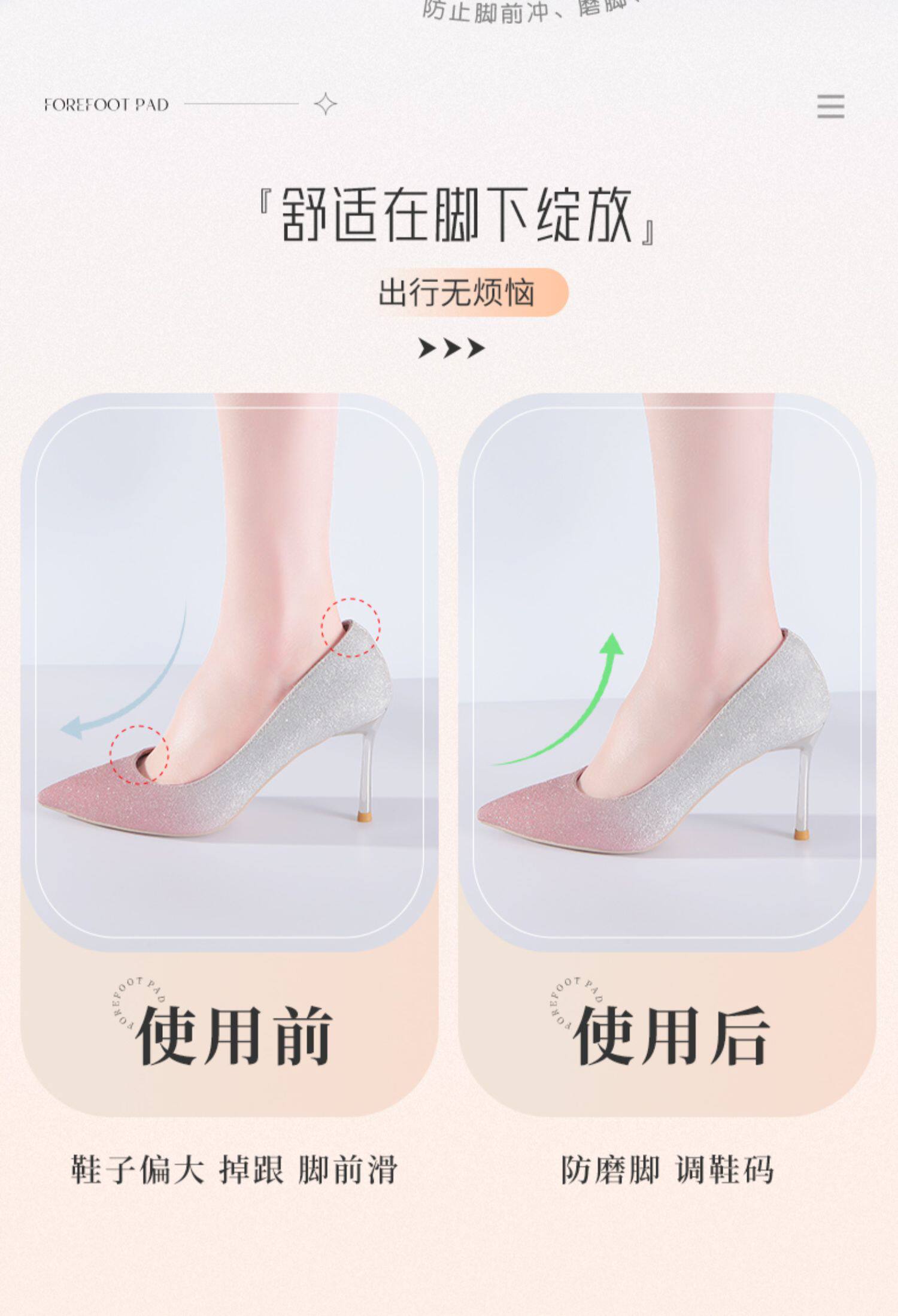 Нескользящие противоболевые туфли на высоком каблуке, стельки, полустельки