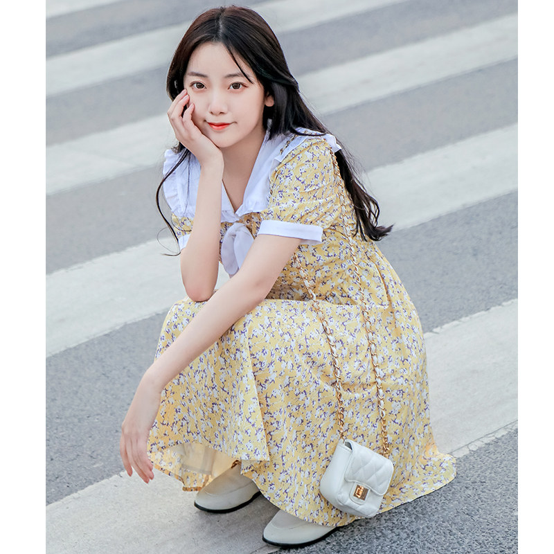 Летняя юбка, желтая кукла, легкое и тонкое милое платье, кукольный воротник, короткий рукав