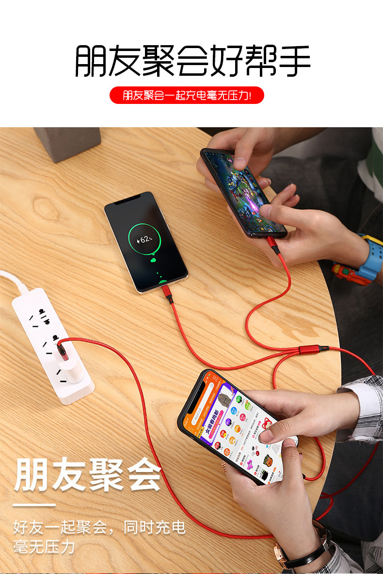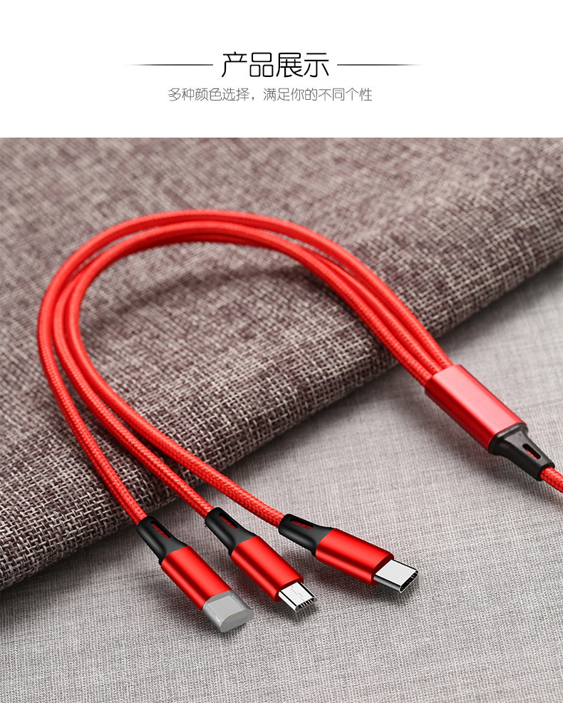 Кабель данных три -в одном зарядном кабеле, один перетаскивание, один перетаскивание три Pop -Ups Typec Android Multi -Model Universal Practicality Practicality