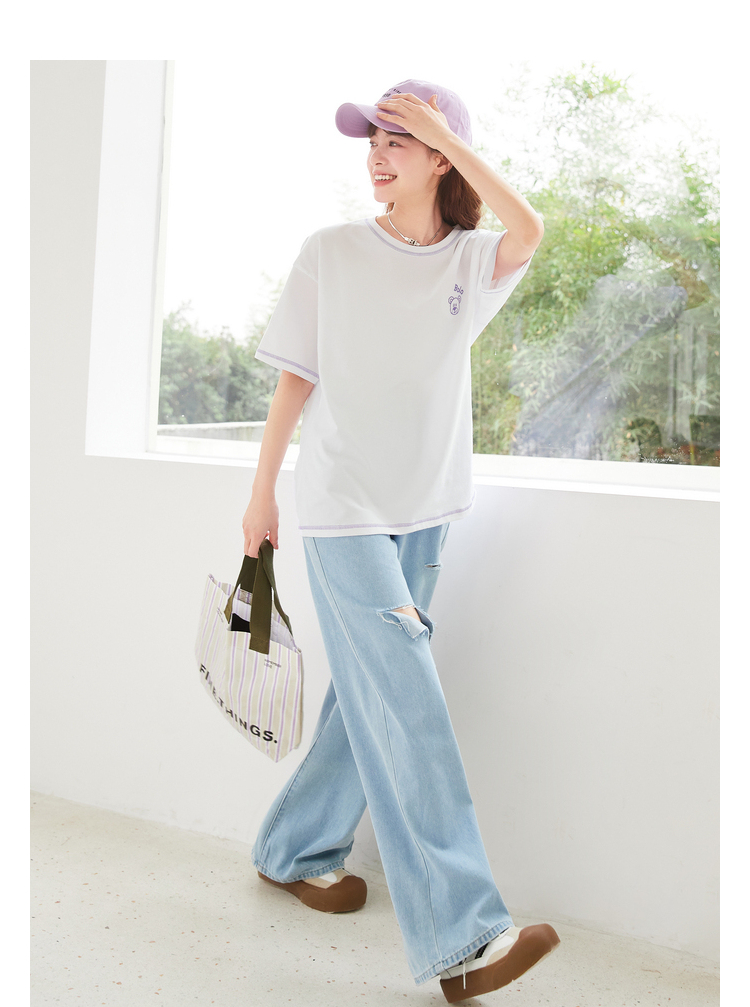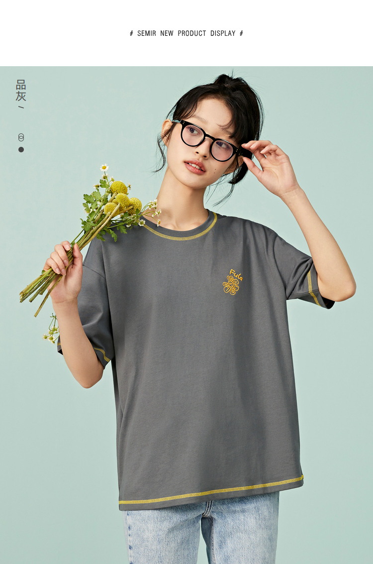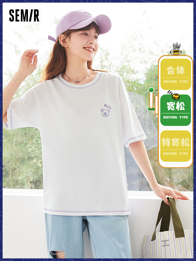 Semir, летняя хлопковая розовая сиреневая футболка с коротким рукавом, с вышивкой, оверсайз