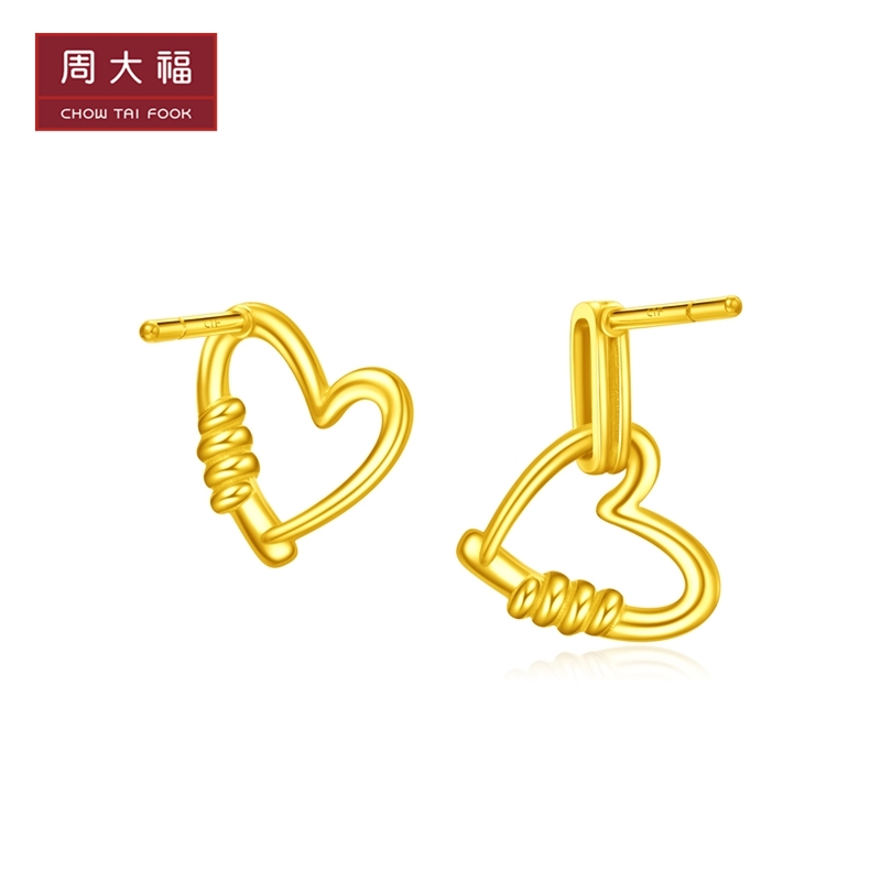 Чжоу Дафу запутался с золотыми серьгами в форме любви для цены на EOF719