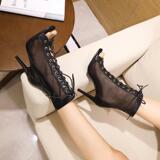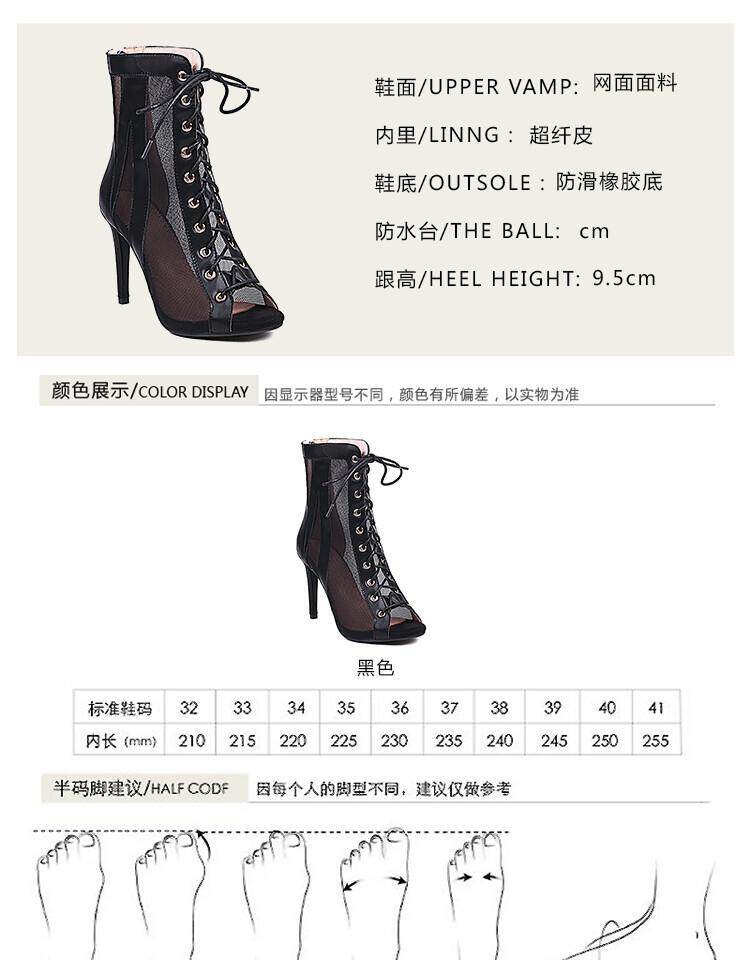 2022 весна и лето, туфли на очень высоком каблуке, на очень высоком каблуке, на шнуровке, сетчатые полые сандалии для танцев, сексуальные сапоги в сетку в европейском и американском стиле, большой размер