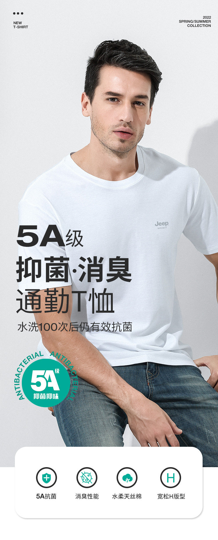 Джип, хлопковая тонкая антибактериальная шелковая футболка с коротким рукавом, новая коллекция