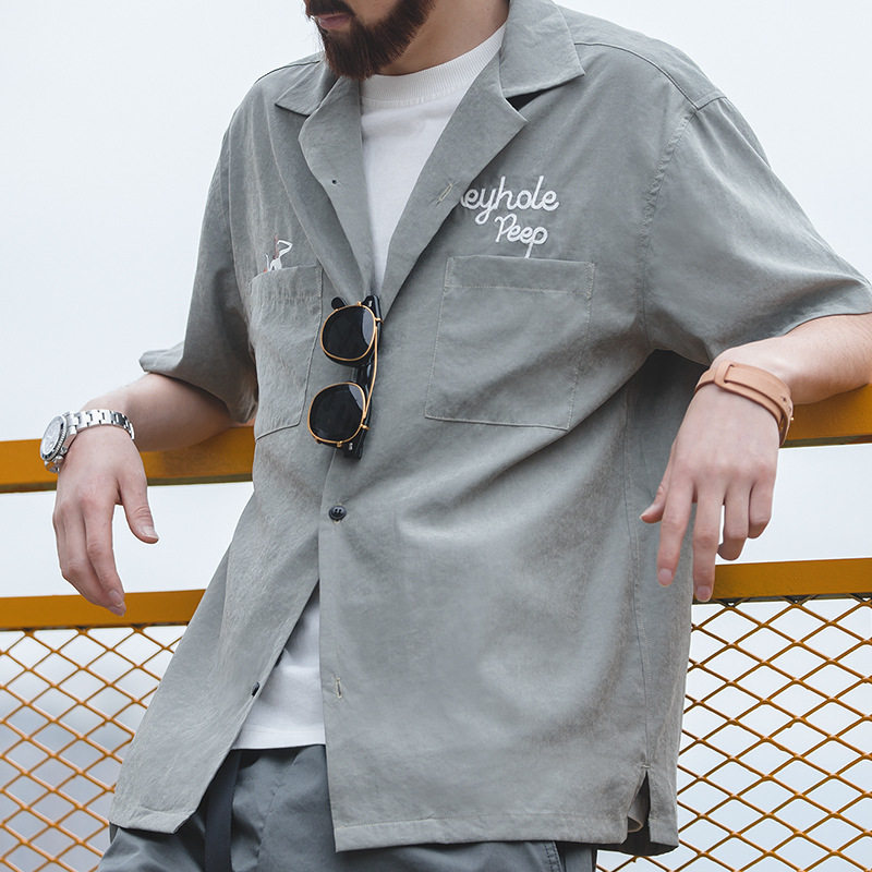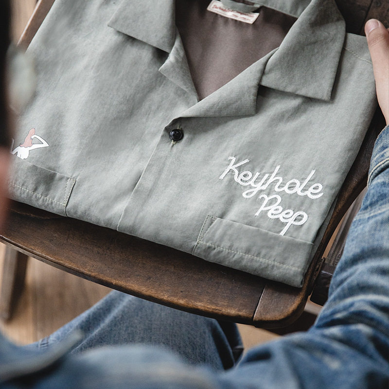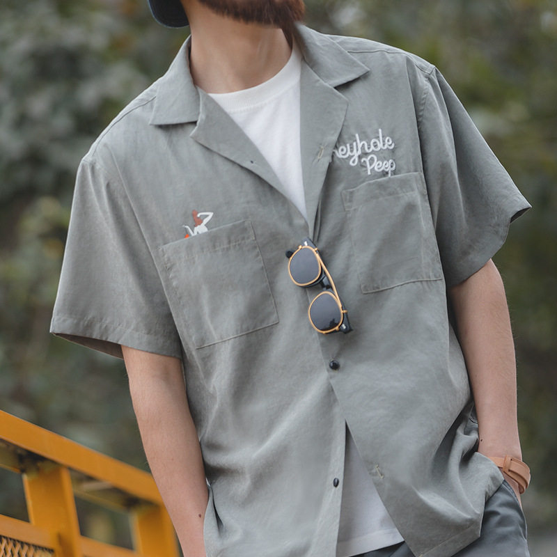 Ретро летняя рубашка для отдыха, в американском стиле, свободный крой, короткий рукав, V-образный вырез