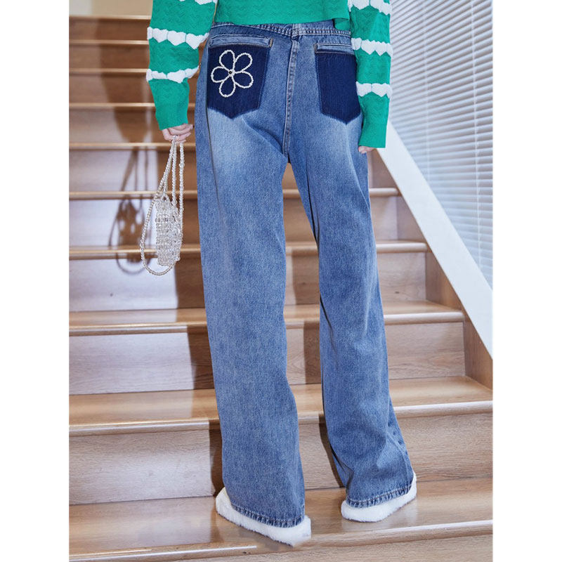Весенние летние модные трендовые джинсы, дизайнерские штаны, тренд сезона, высокая талия, свободный прямой крой