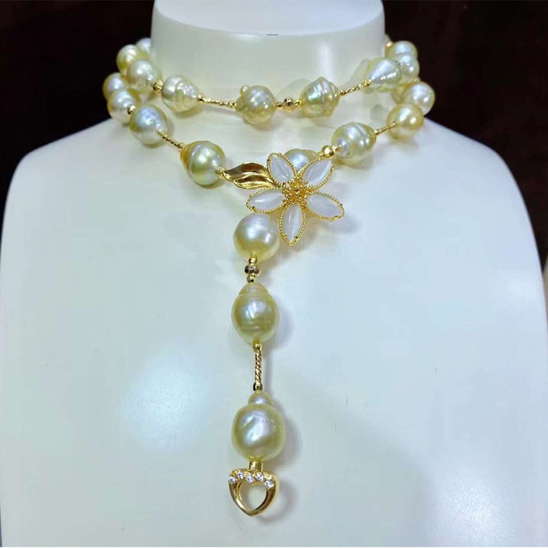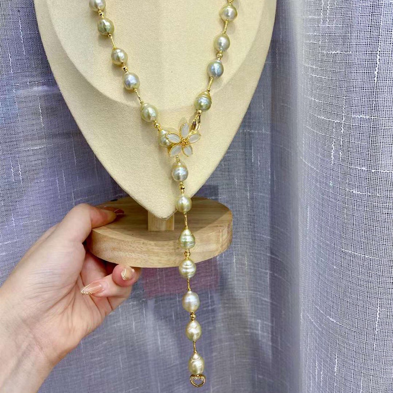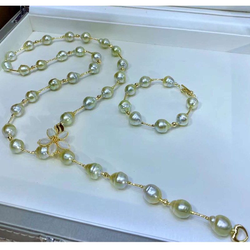 Аксессуары из жемчуга, ожерелье и браслет из нефрита, свитер, DIY, золото 14 карат