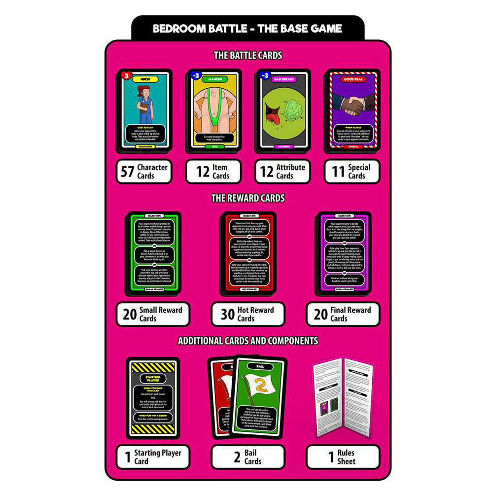 Концепция очень проста. В каждом раунде игры вы используете боевые карты, чтобы побороться за наградную карту, содержащую три разных сексуальных испытания. Победитель раунда затем сможет выбрать одно из сексуальных испытаний, которые вы оба сможете выполнить. Выполнив задание, вы переходите к следующему раунду и начинаете играть за новую наградную карту. Чтобы сделать игру интереснее, награды будут становиться все более и более непослушными, пока игра не закончится последней наградой, которая, конечно же, является самой непослушной из всех.
