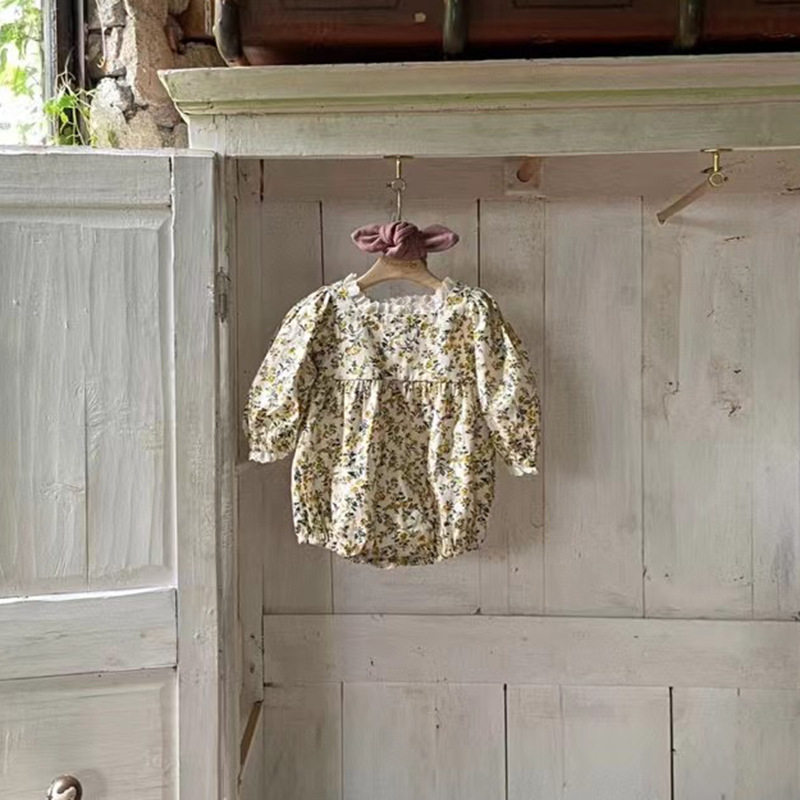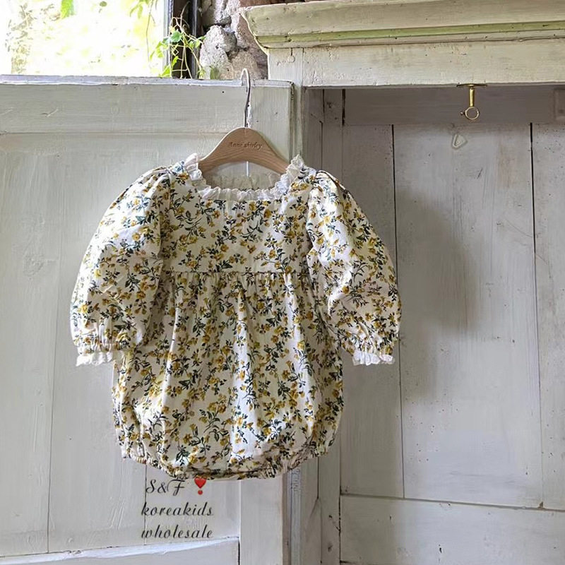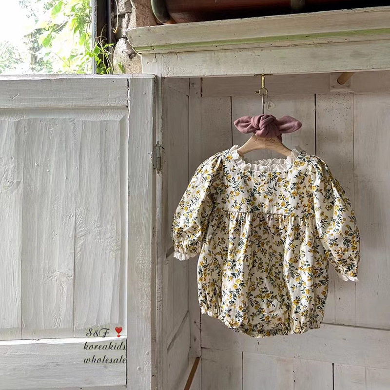 Весеннее боди для девочек, лонгслив, детский комбинезон, в корейском стиле, цветочный принт