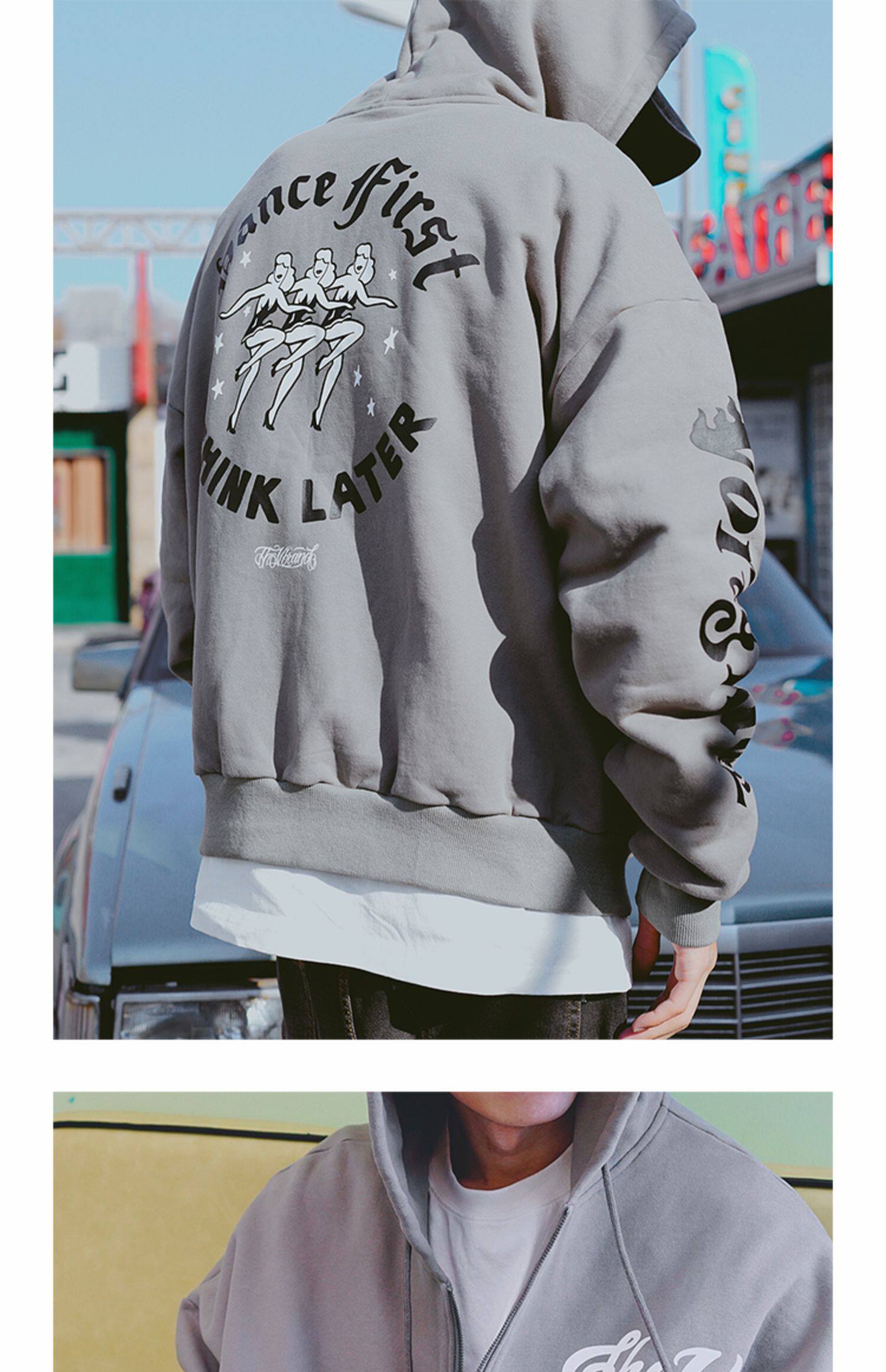 Ретро толстовка с капюшоном, балахон с молнией, в американском стиле, оверсайз