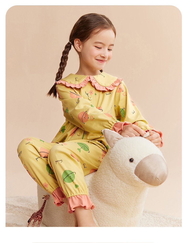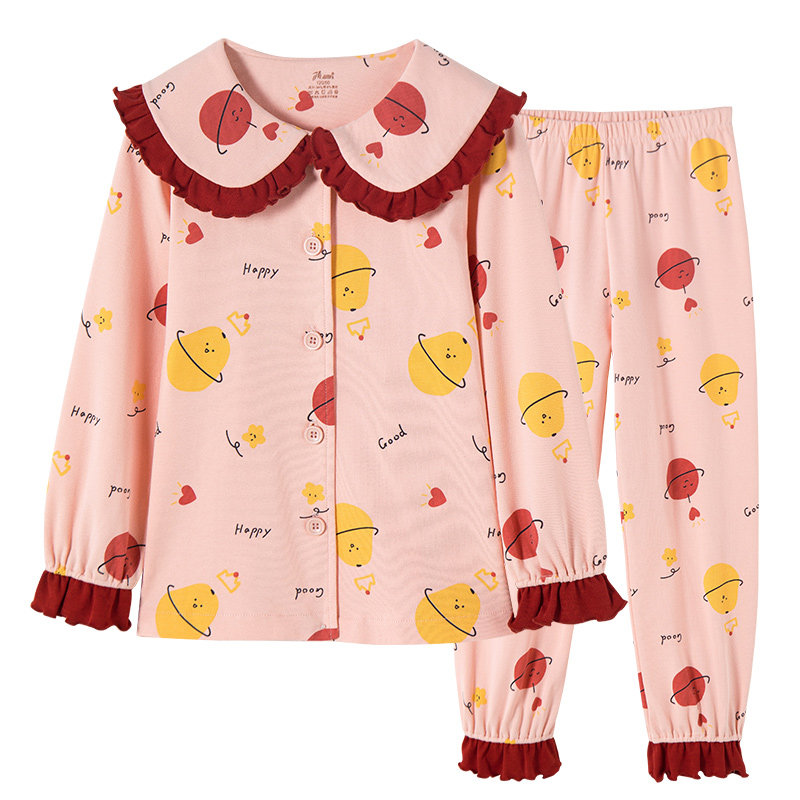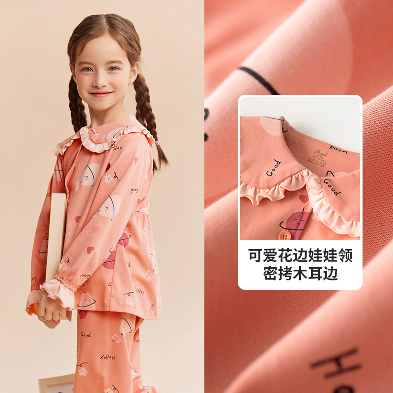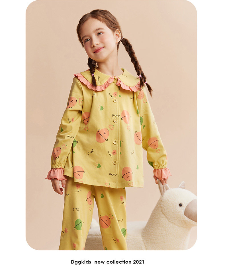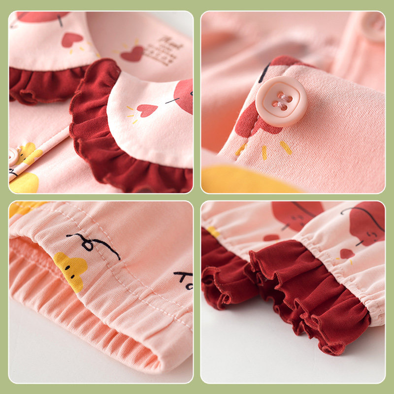 Детская осенняя пижама, комплект, хлопковый лонгслив, штаны, кукла, цветочный принт, кукольный воротник