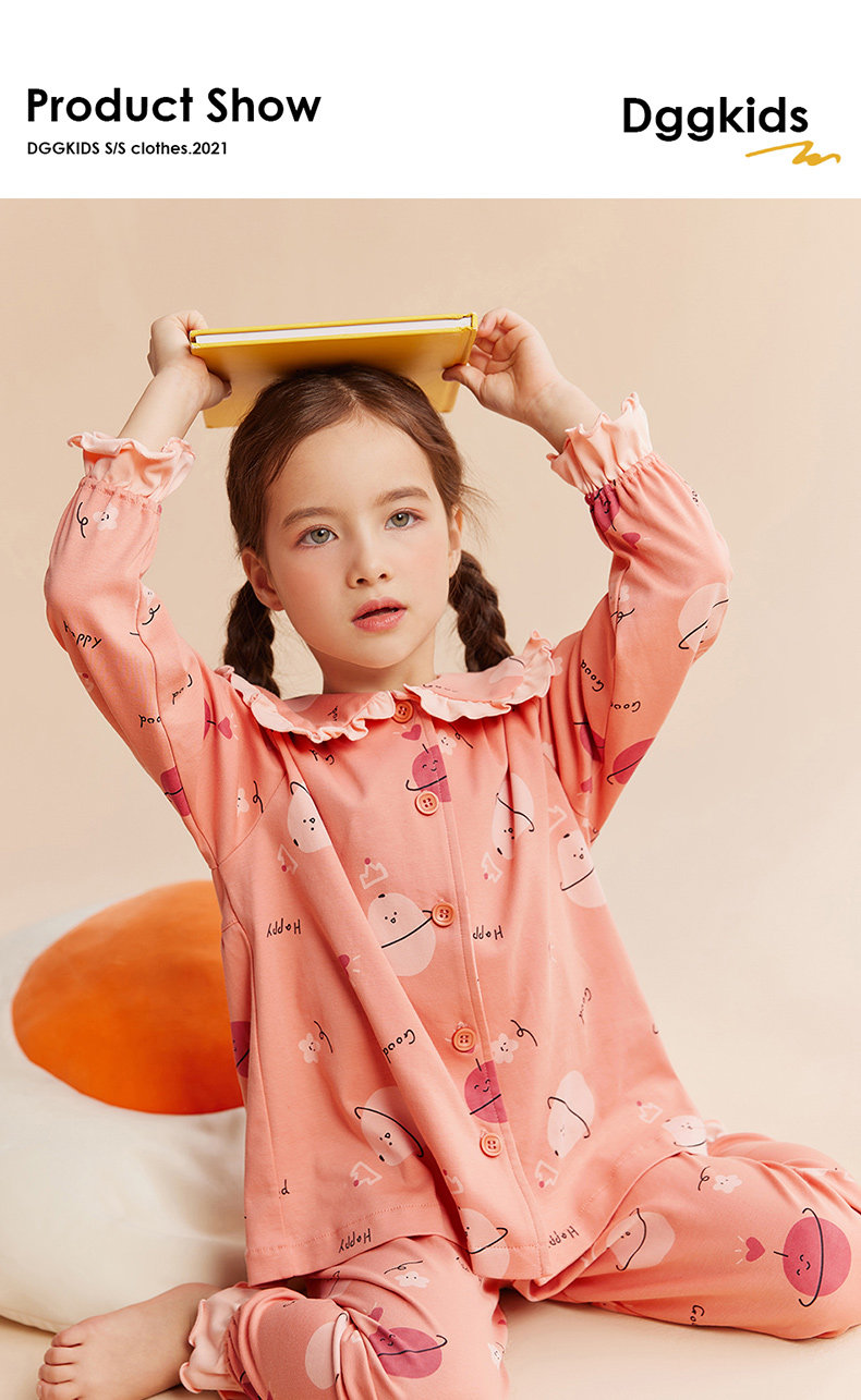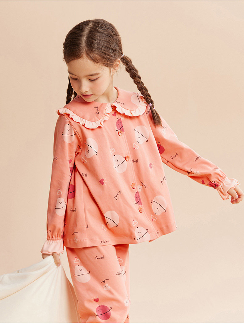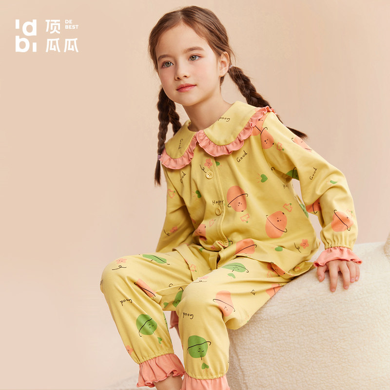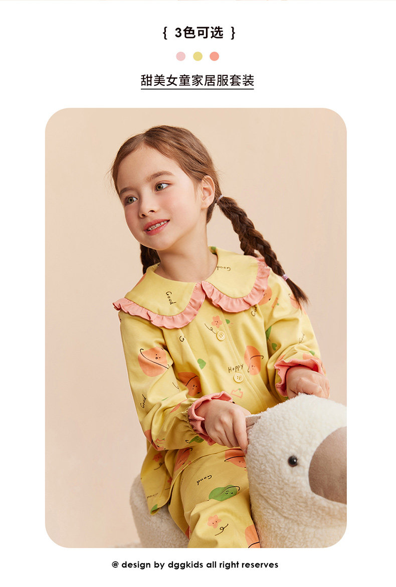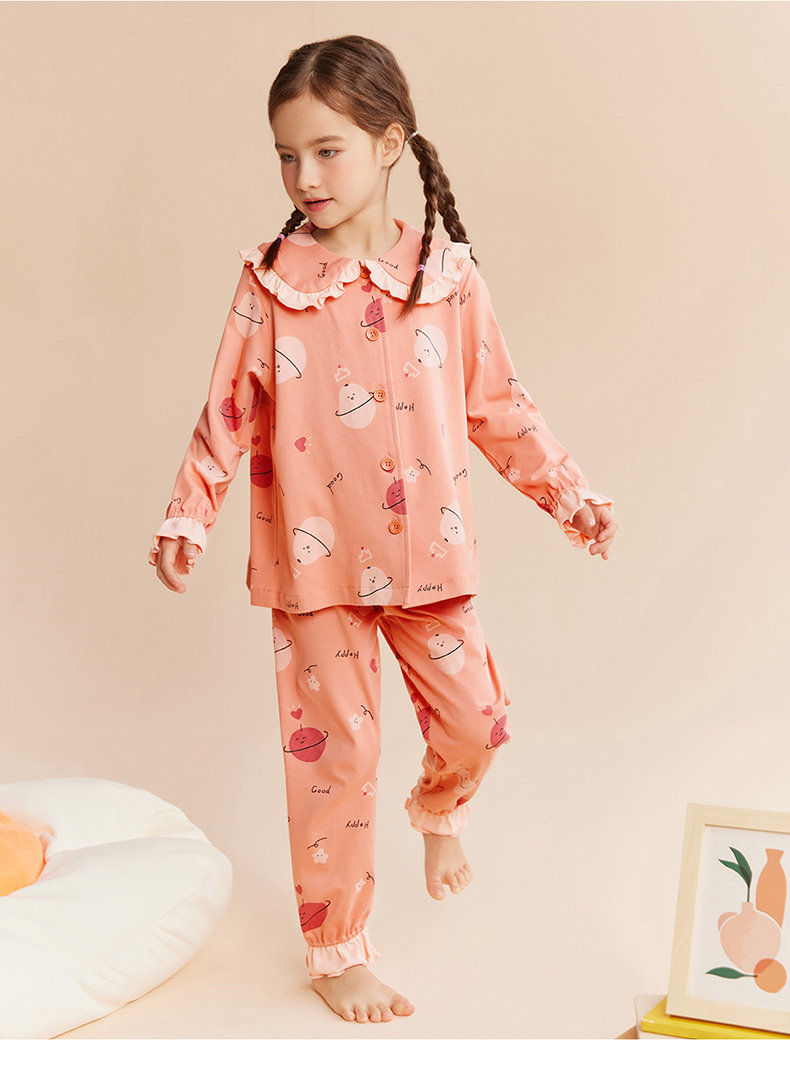 Детская осенняя пижама, комплект, хлопковый лонгслив, штаны, кукла, цветочный принт, кукольный воротник