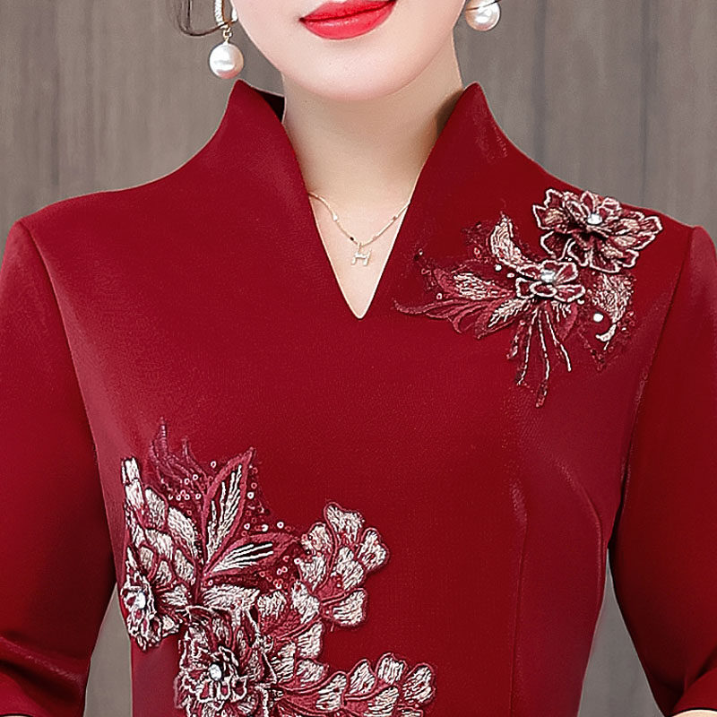 Демисезонный пуховик, шелковое элитное этническое платье для матери, большой размер, этнический стиль, для среднего возраста