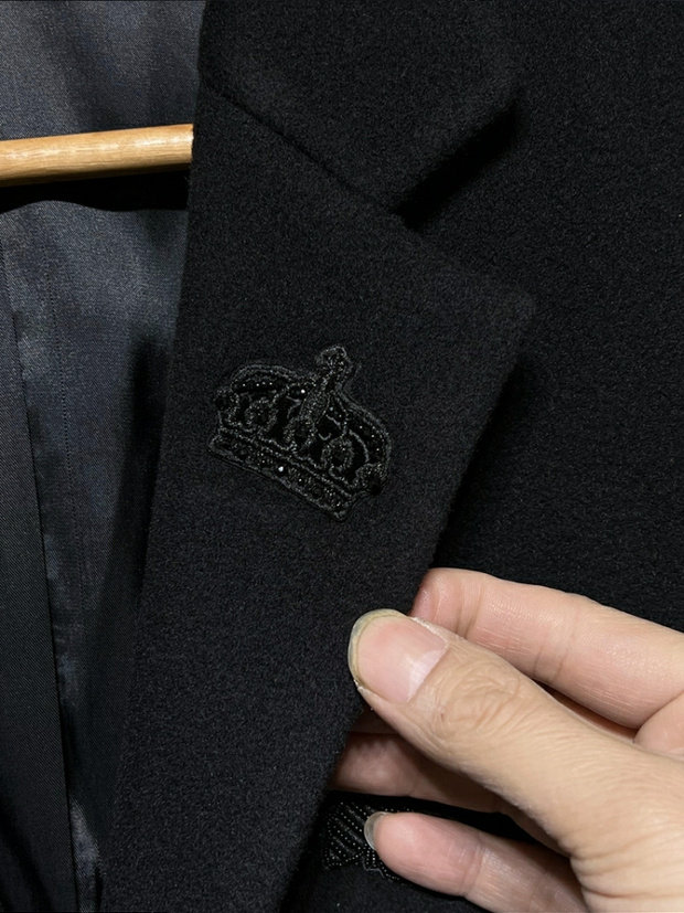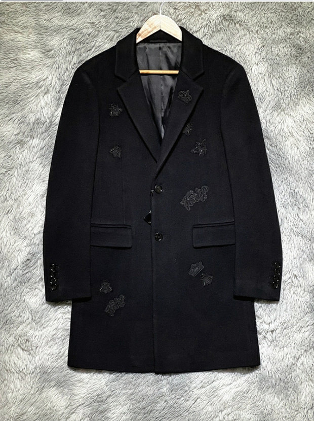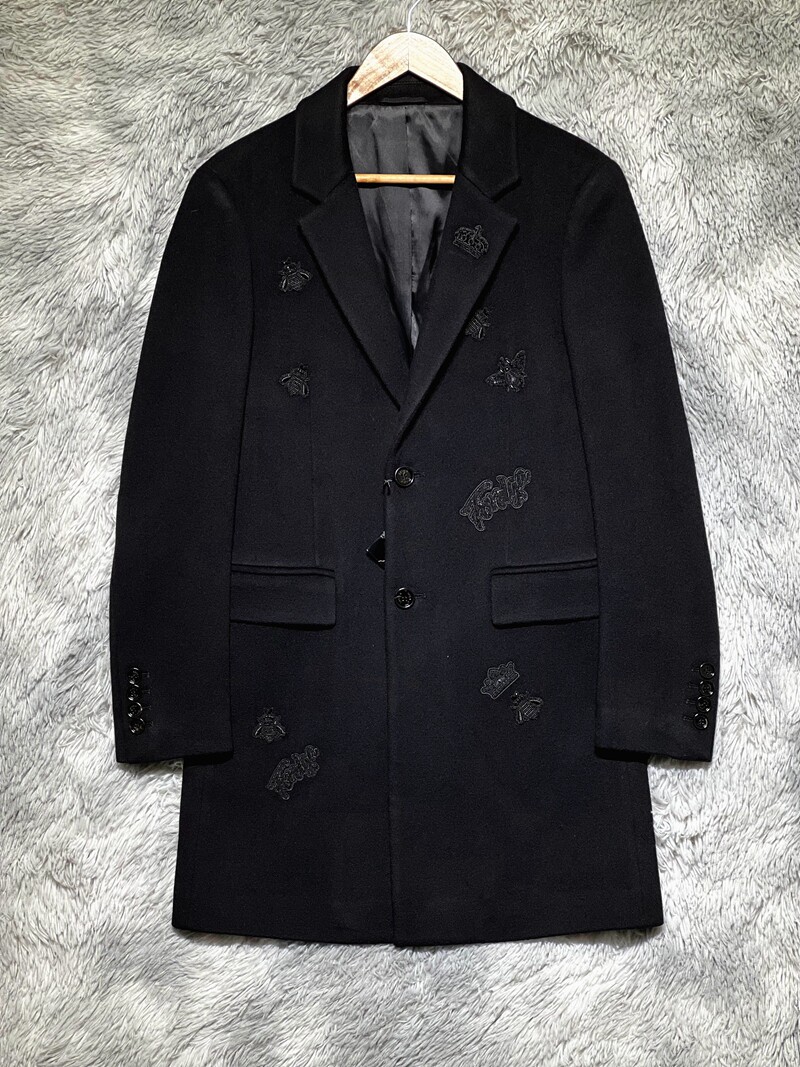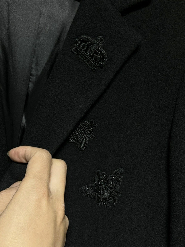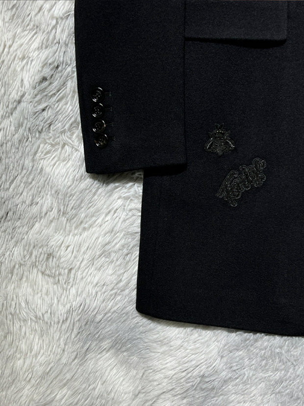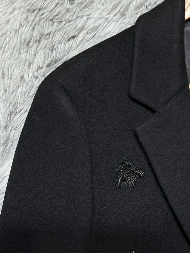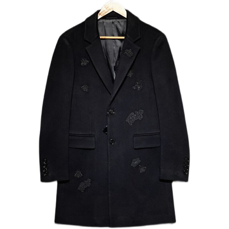 Итальянский люксовый бренд, мужское осенне-зимнее подиумное дорогое длинное кашемировое пальто с короной и вышивкой пчелы и бриллиантами
