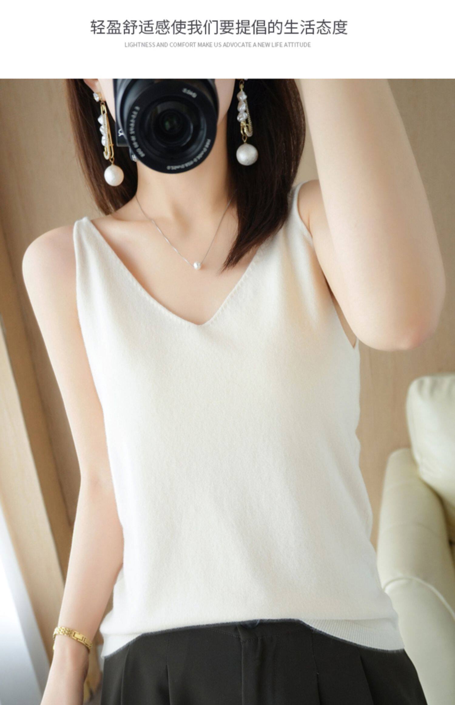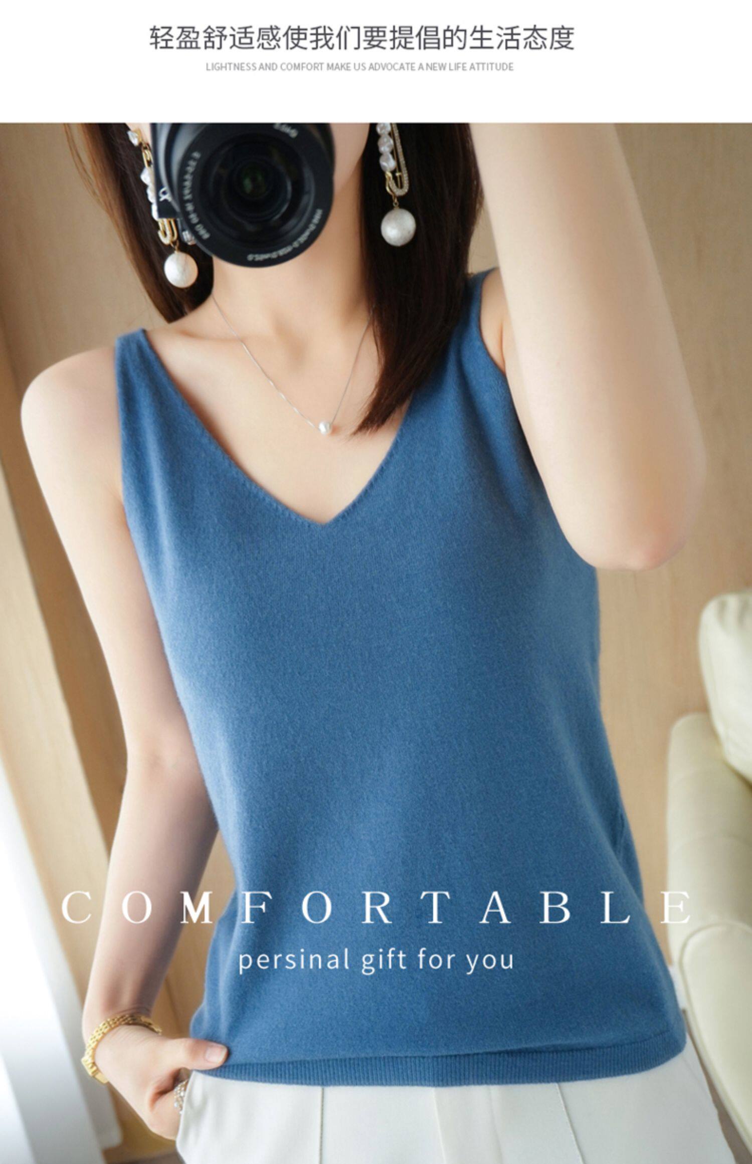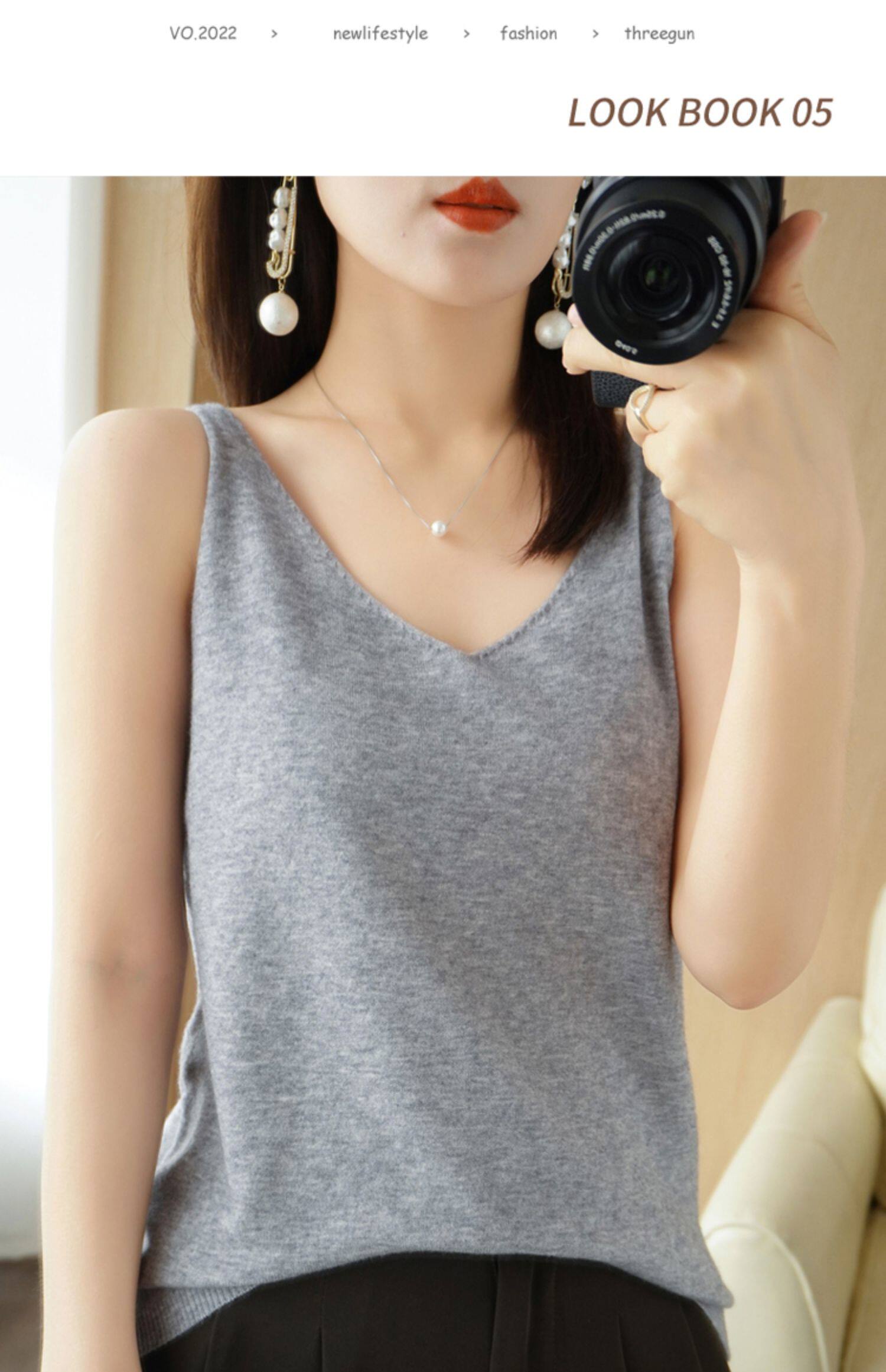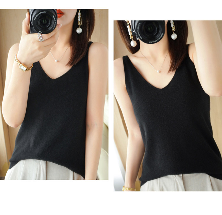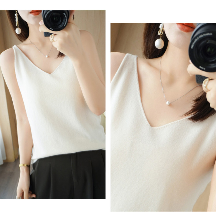 Базовая майка топ, трикотажный костюм, тонкий свитер, V-образный вырез, эффект подтяжки