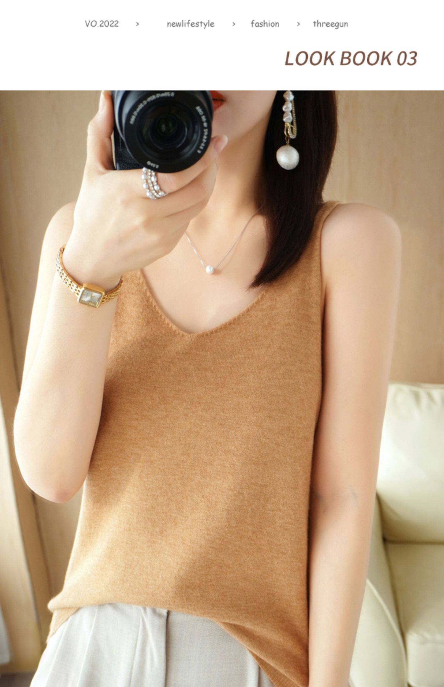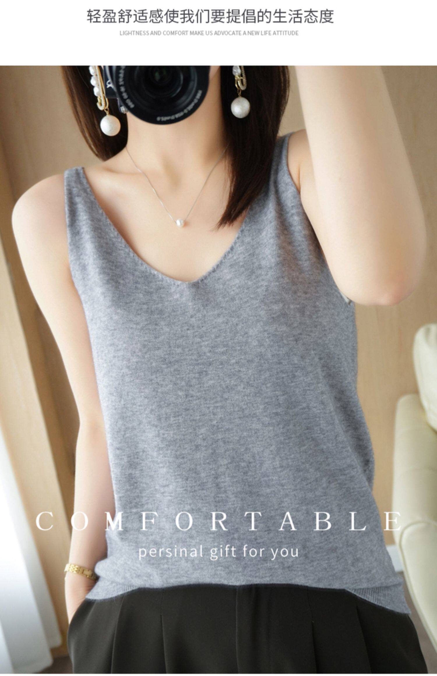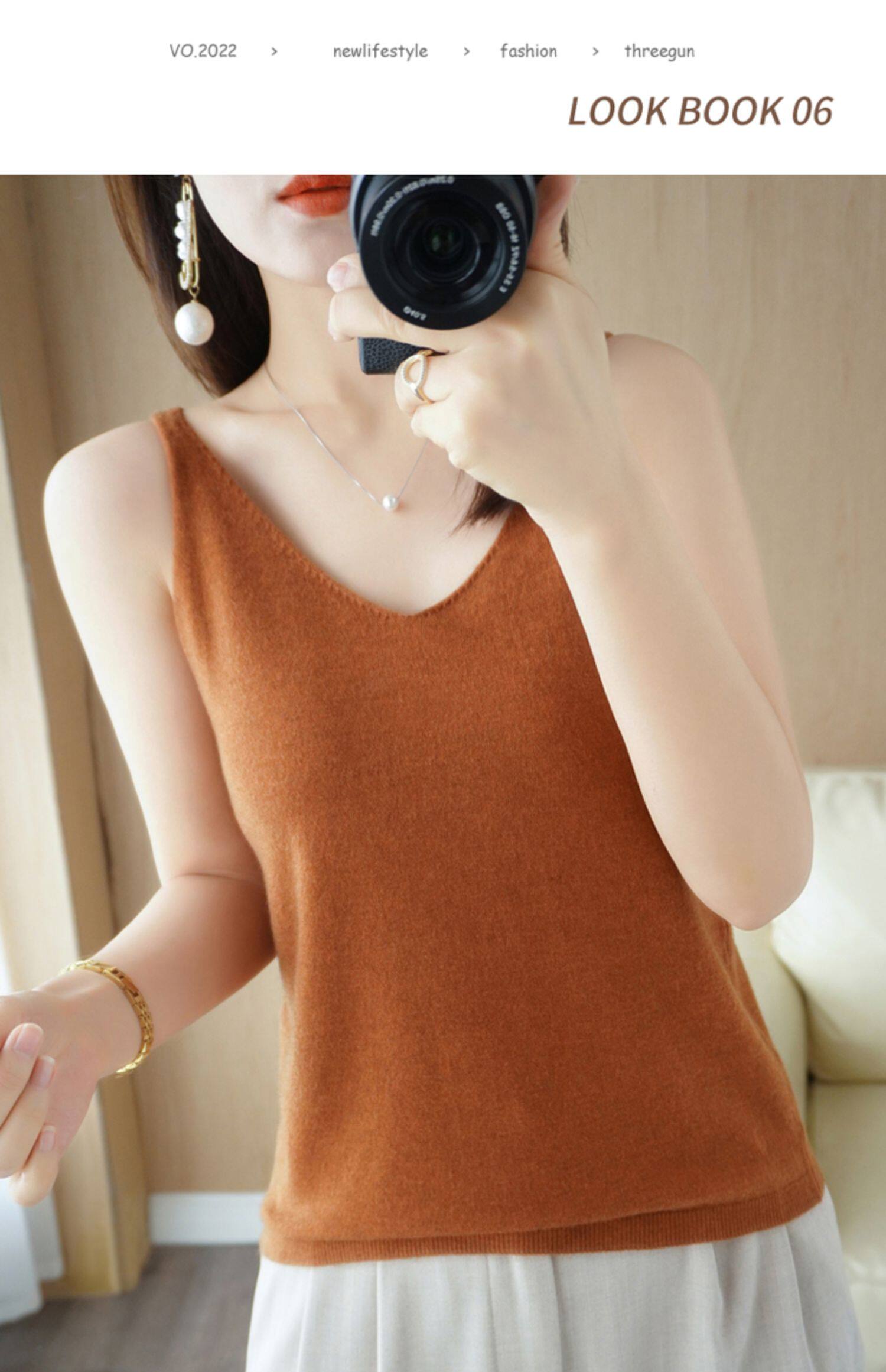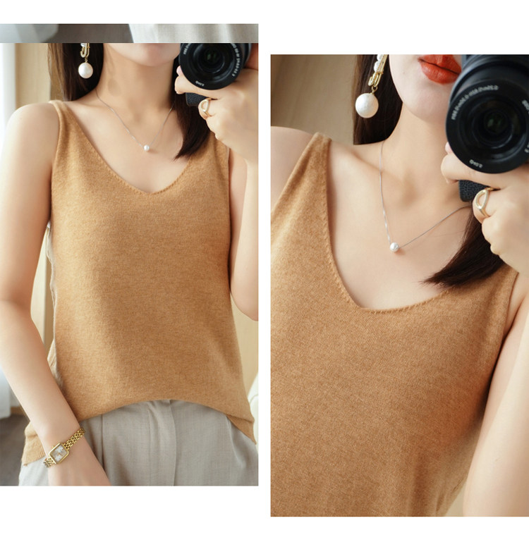 Базовая майка топ, трикотажный костюм, тонкий свитер, V-образный вырез, эффект подтяжки