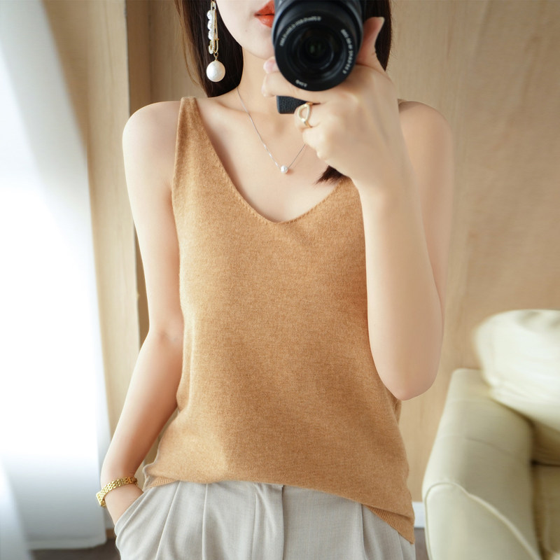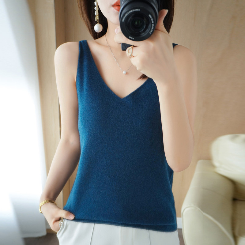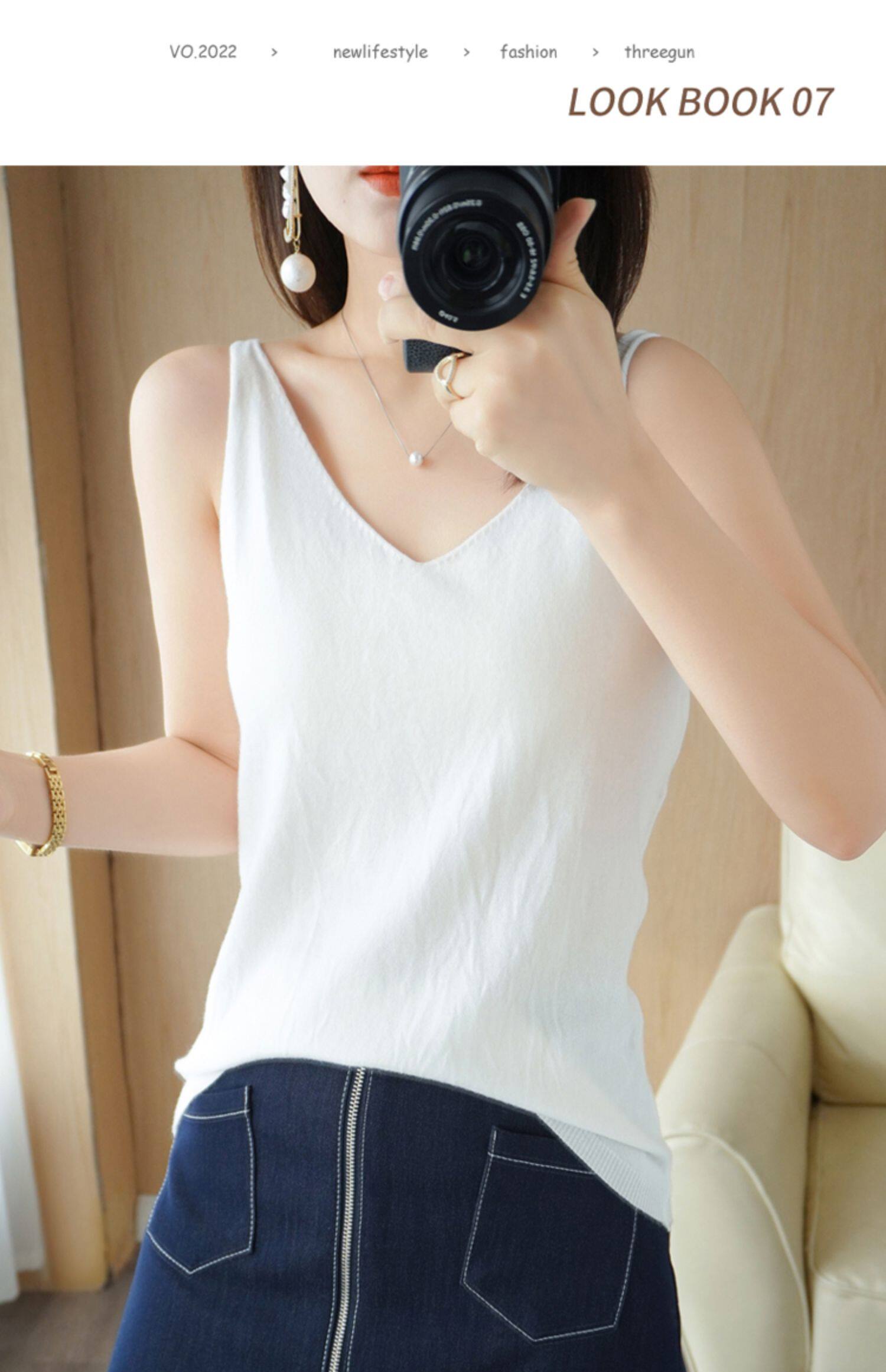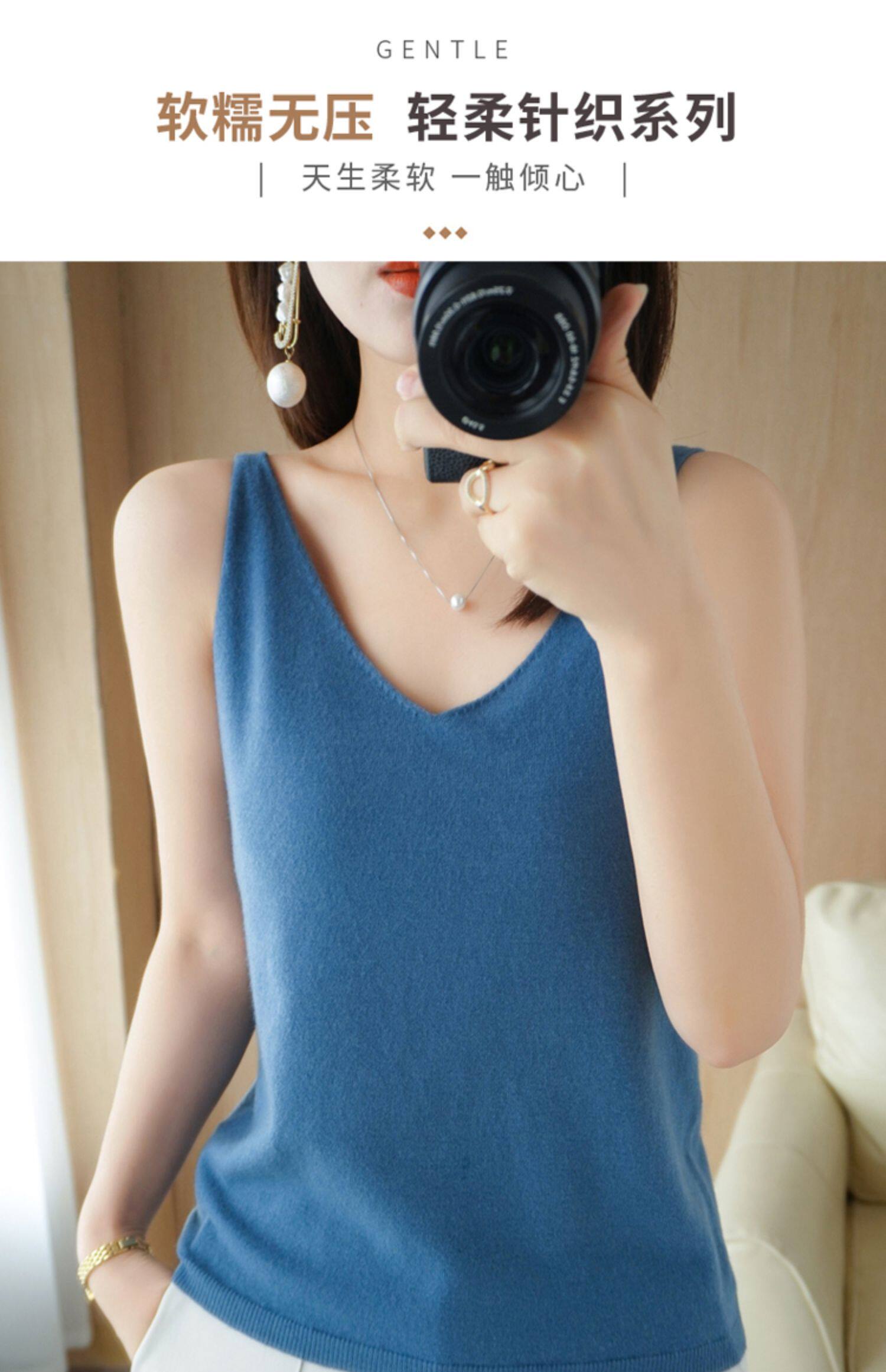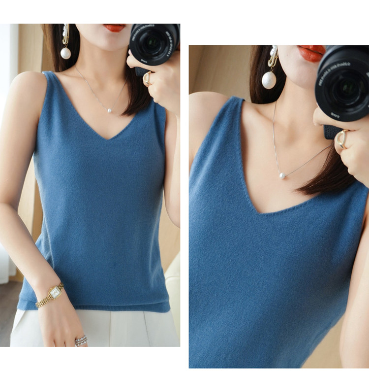 Базовая майка топ, трикотажный костюм, тонкий свитер, V-образный вырез, эффект подтяжки
