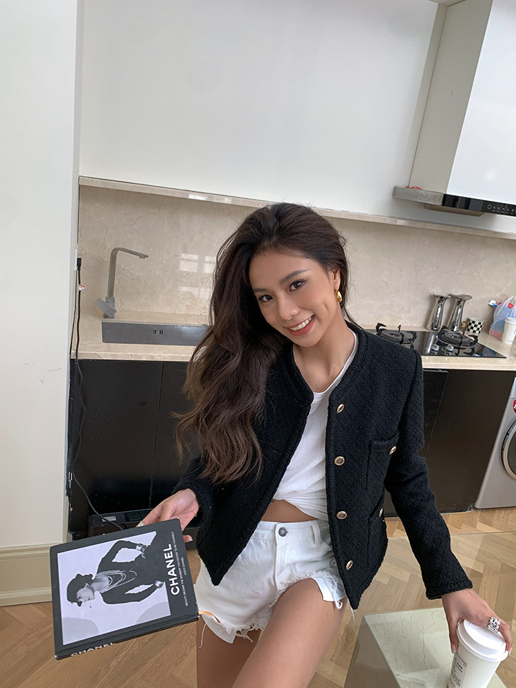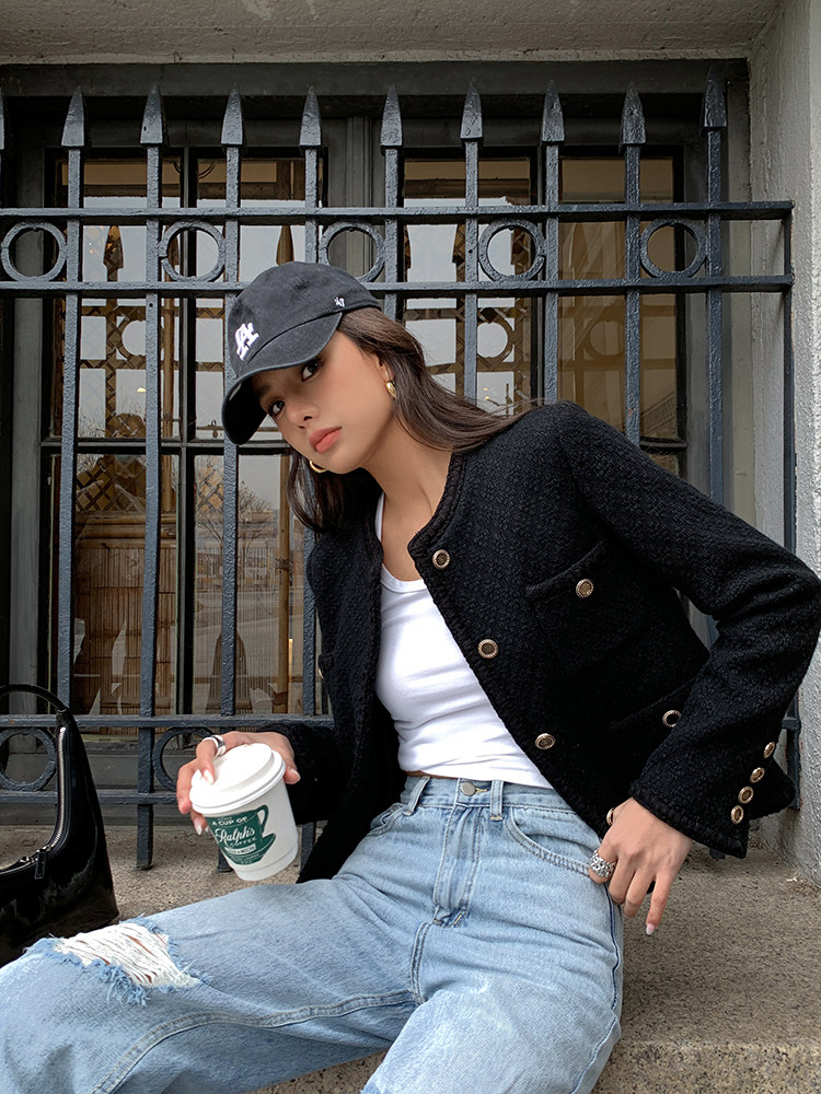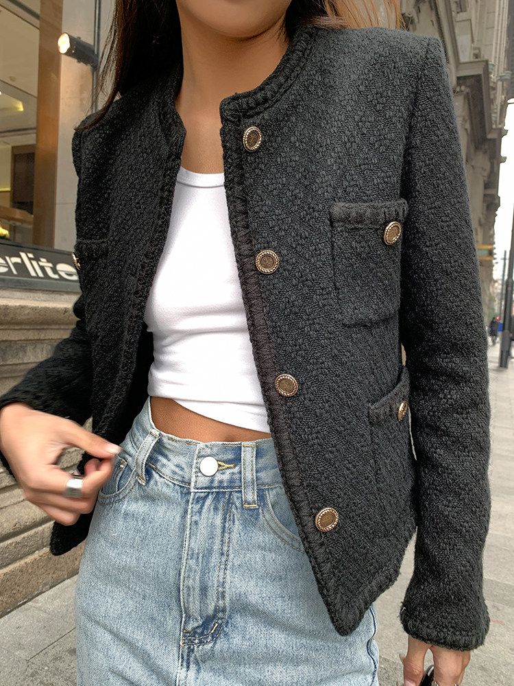 Весенняя приталенная черная куртка, в стиле Шанель, 2023