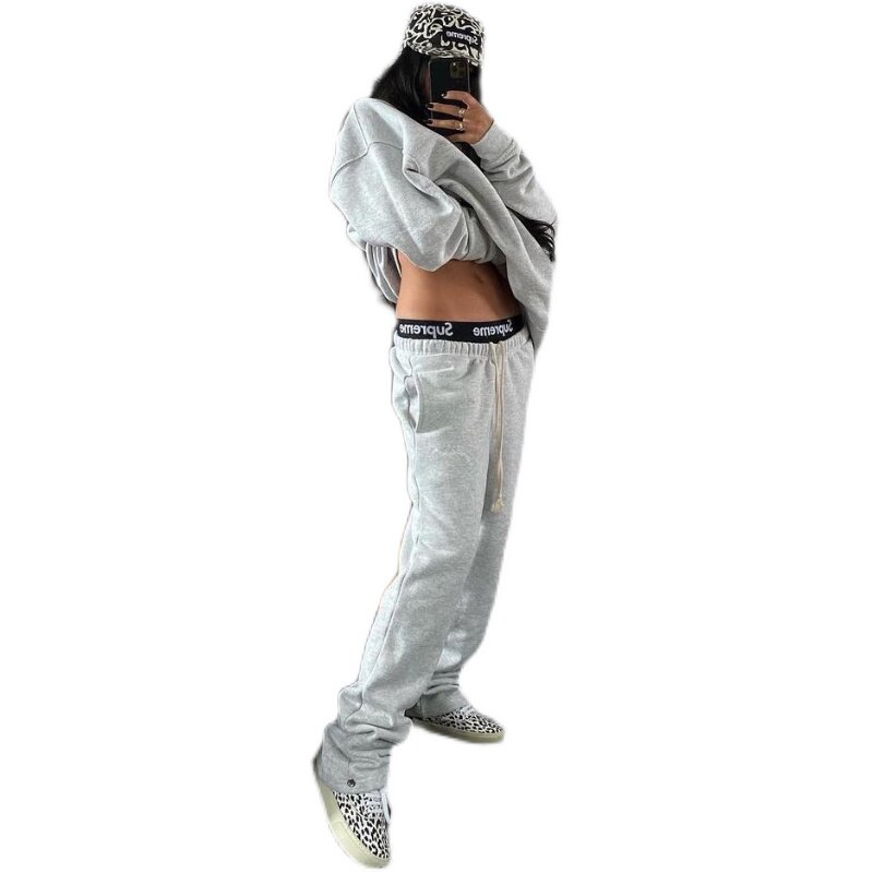 Бархатные штаны, повседневные брюки, свитшот, с вышивкой, со снежинками