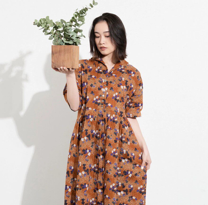 Японская двухслойная марлевая ткань Echino Etsuko для одежды ручной работы с маленьким цветком на полметра