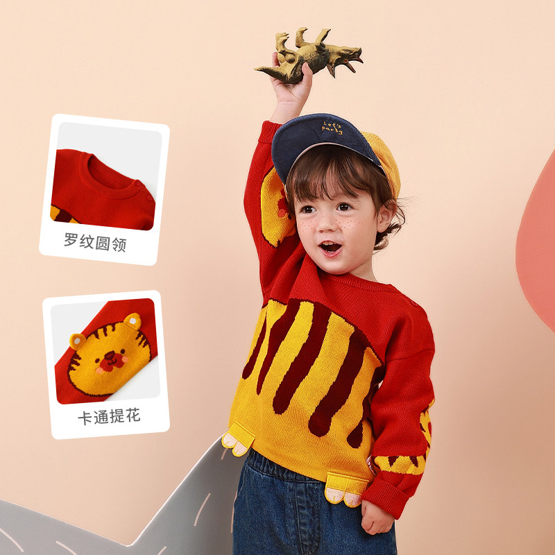 Красный трикотажный демисезонный зимний детский хлопковый свитер для мальчиков