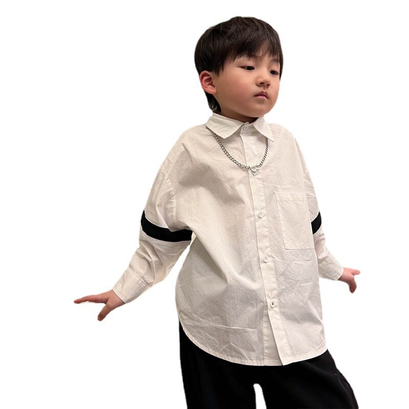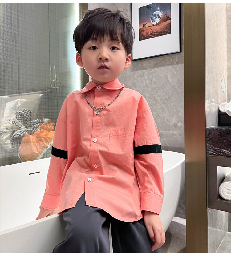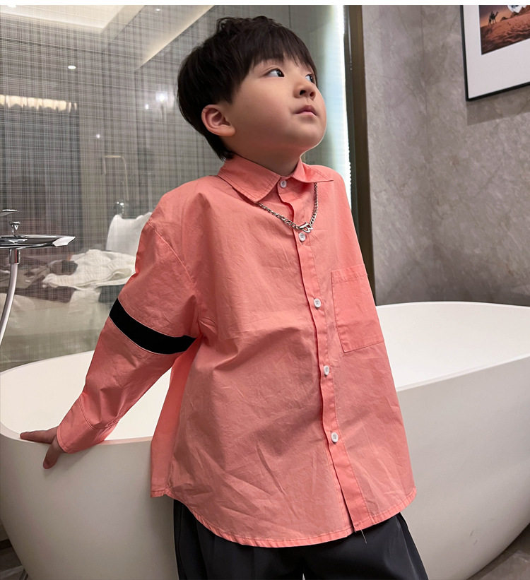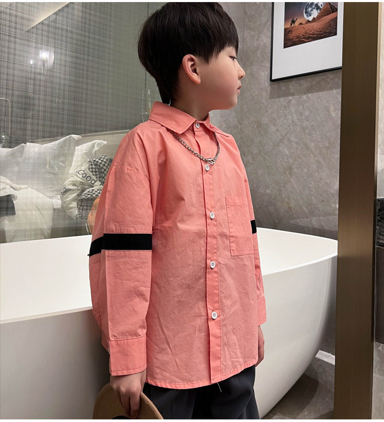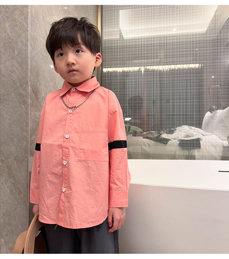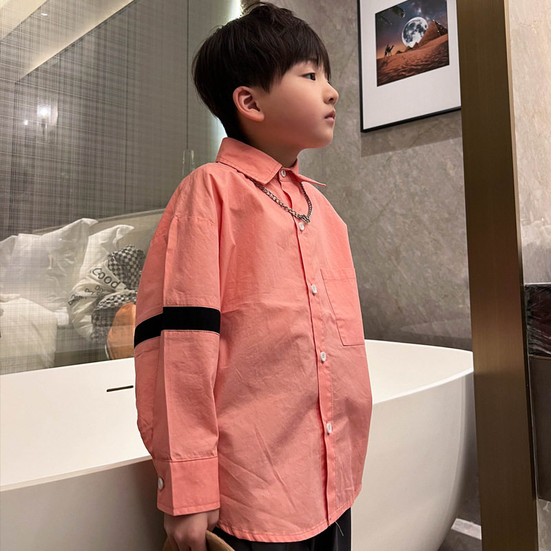 Розовая белая хлопковая осенняя детская рубашка для мальчиков для отдыха, оверсайз, в корейском стиле, в западном стиле