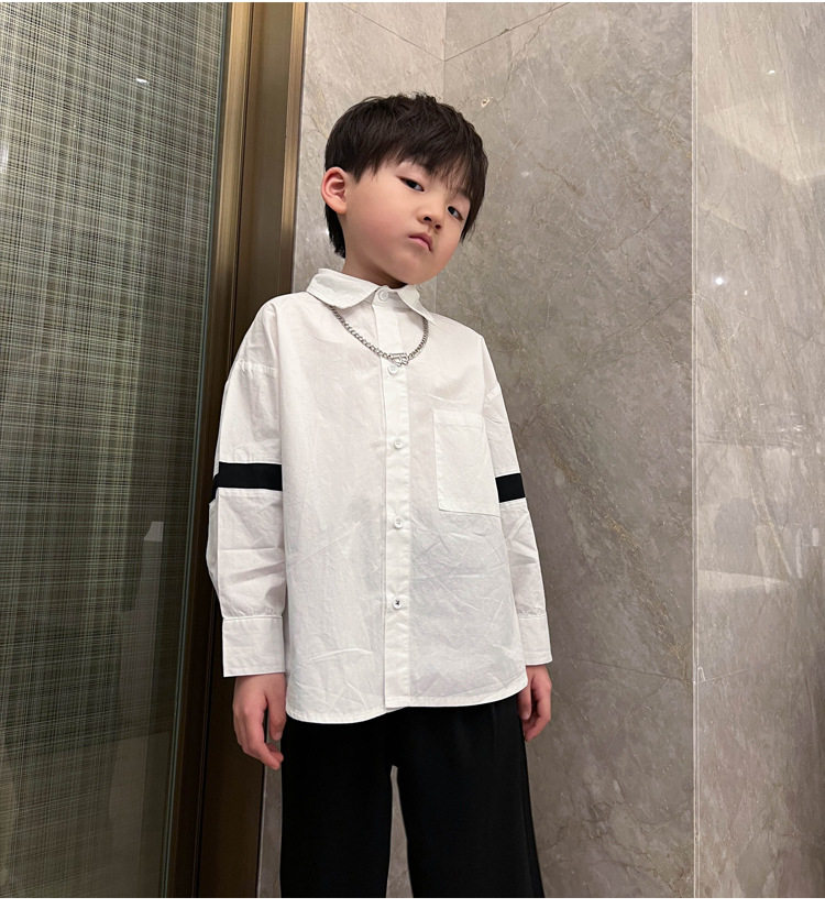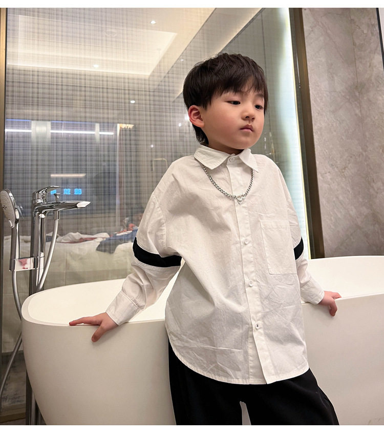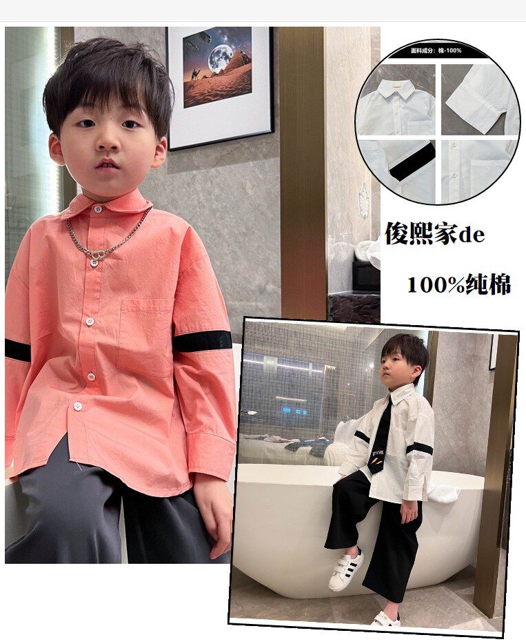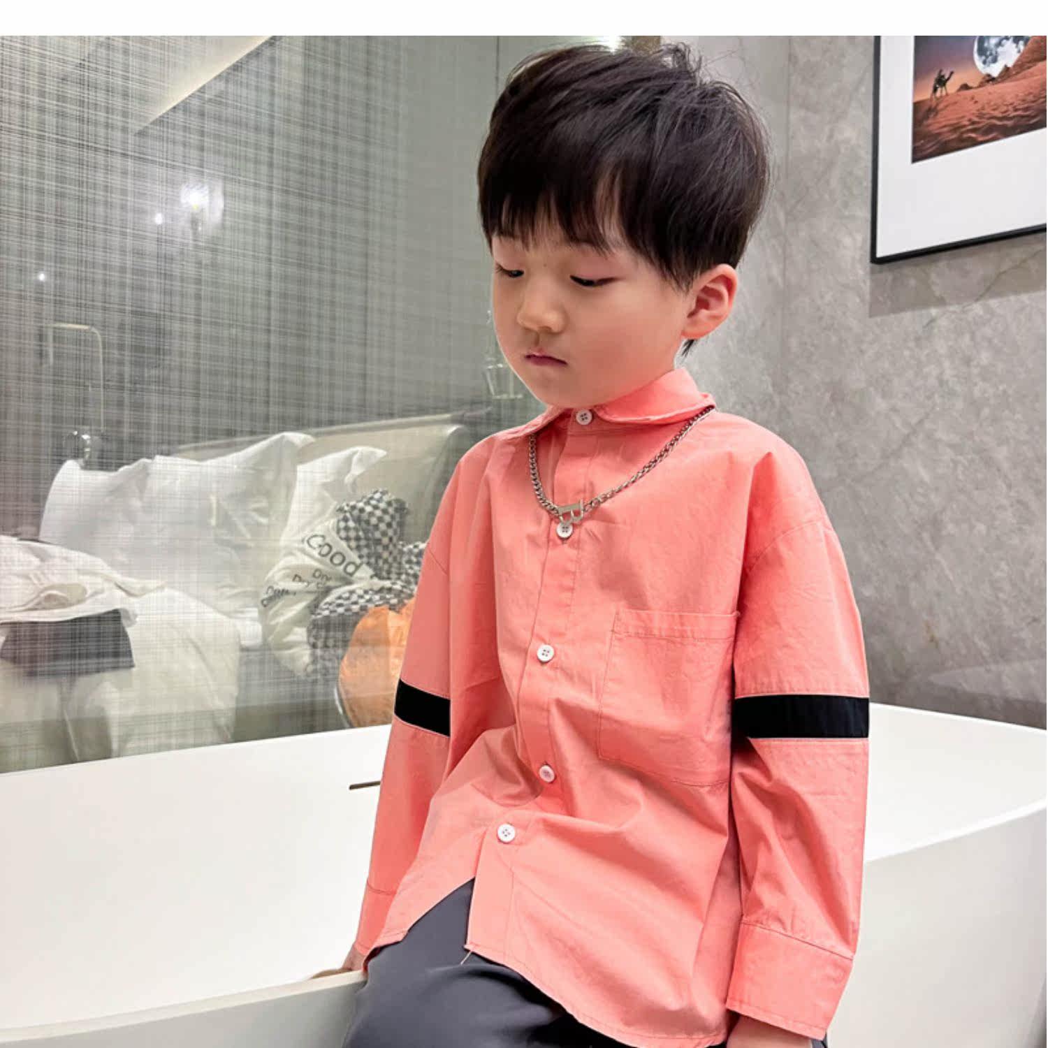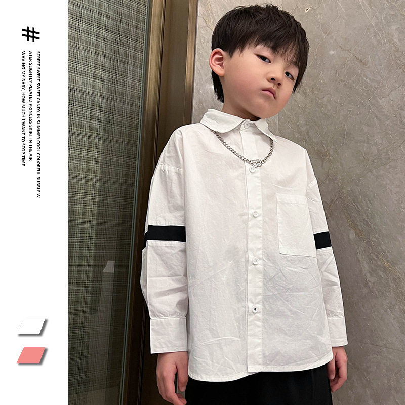 Розовая белая хлопковая осенняя детская рубашка для мальчиков для отдыха, оверсайз, в корейском стиле, в западном стиле