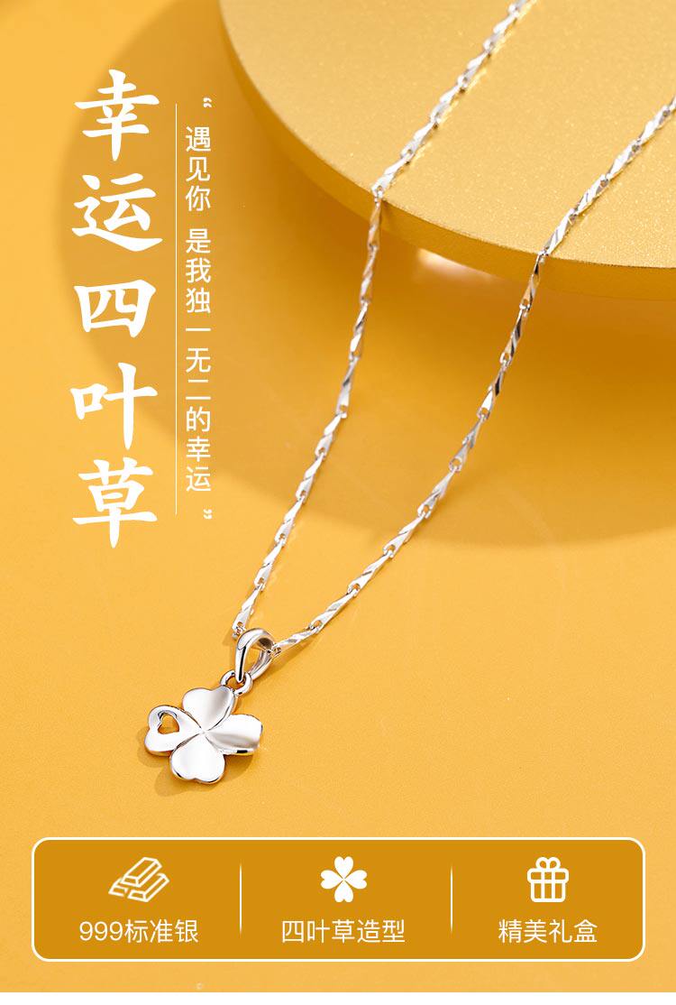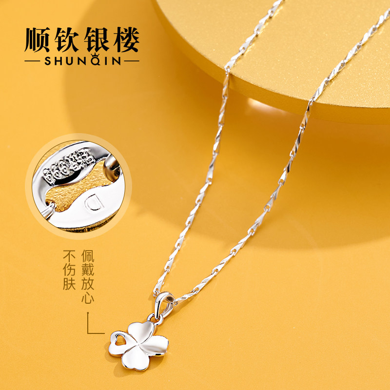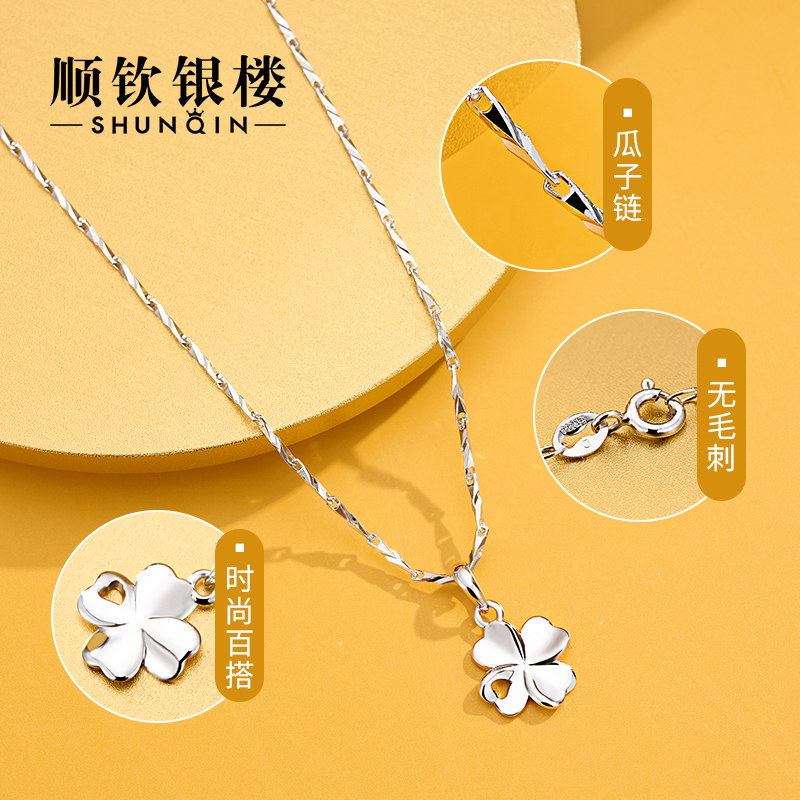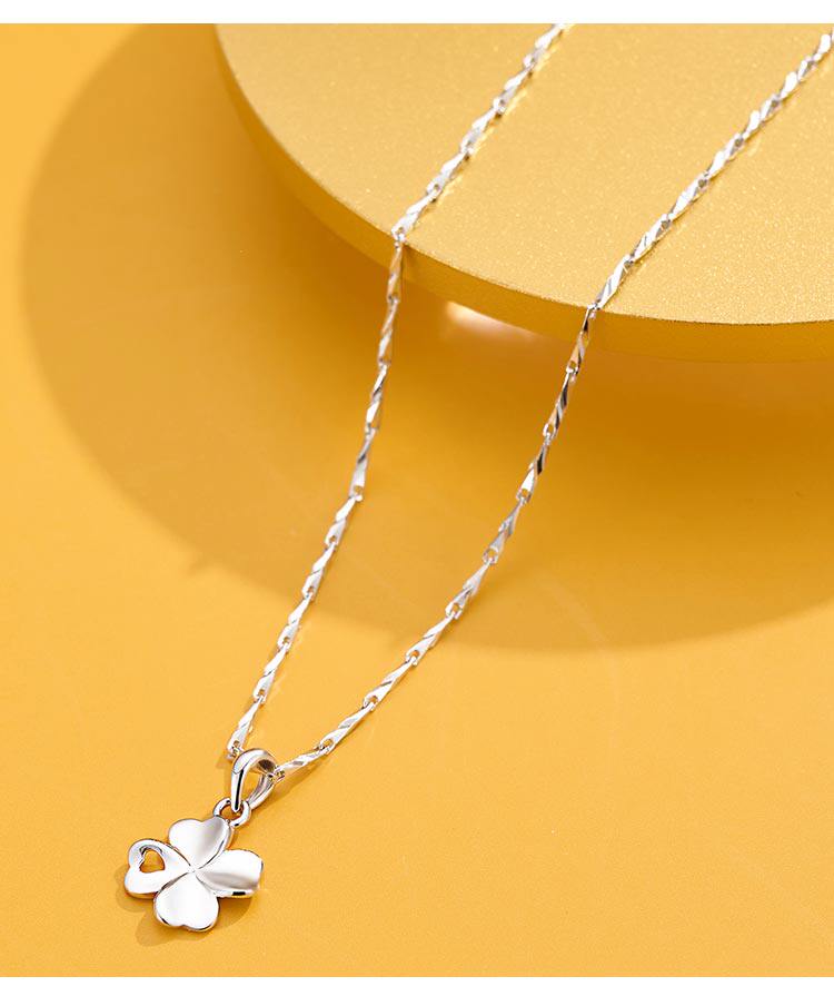 Серебряный браслет, ожерелье, подвеска, свитер, четырехлистный клевер, серебро 925 пробы, простой и элегантный дизайн, изысканный стиль